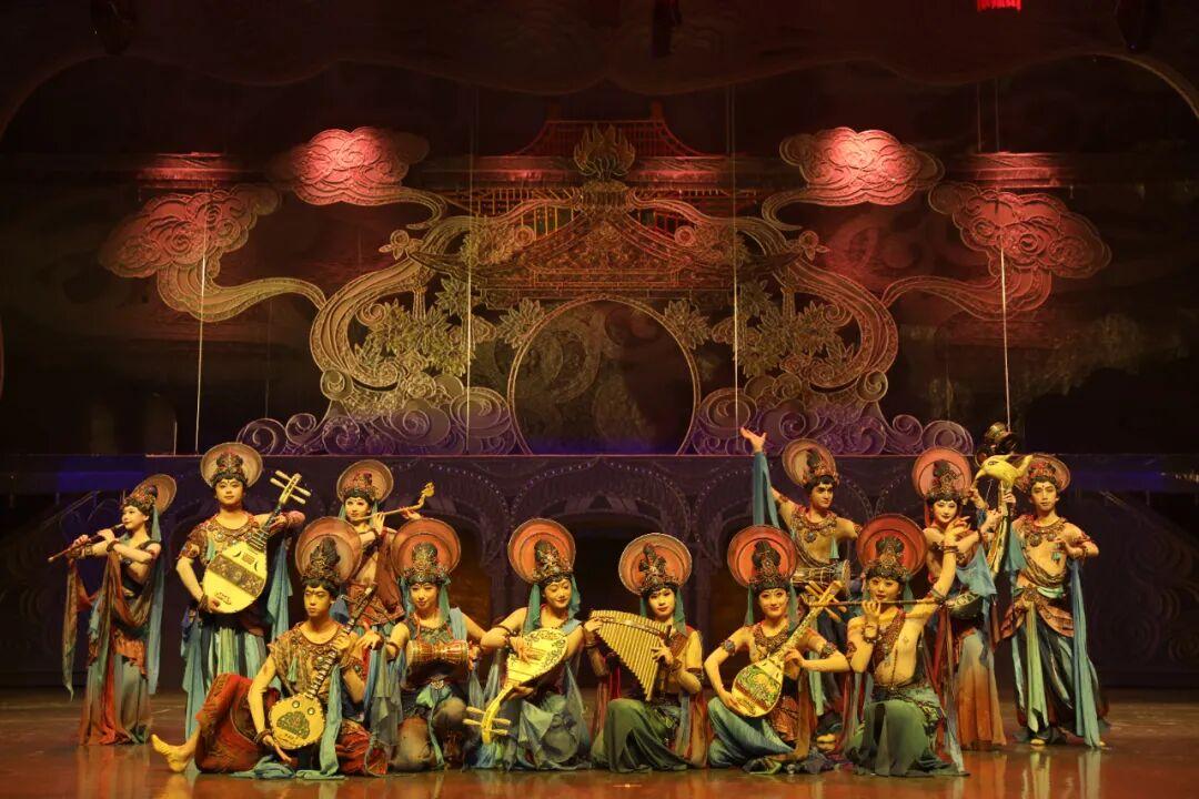 演員們或衣袂飄飄、舞姿曼妙,或指尖輕撥、琴絃悠揚,姿態生動,恰似壁畫裏的人物“活”過來。整個劇場是一個可看、可聽、可遊走、可互動的“文化課堂”。觀衆也跟隨劇中人的足跡,移步易景,連連驚歎,不時舉起手機,記錄動人瞬間。