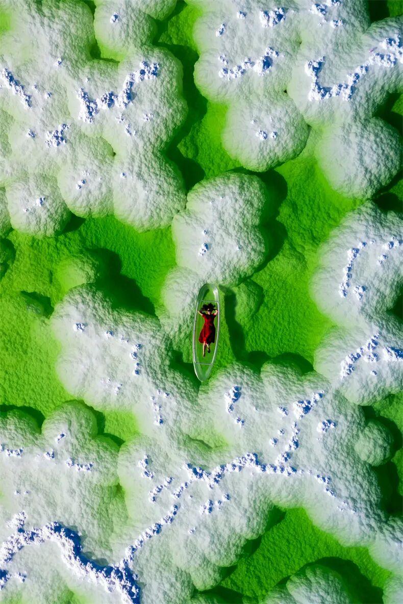 不遠處便是世界唯一的水上雅丹,鮮豔的湖水搭配奇幻的地貌,世間僅有。