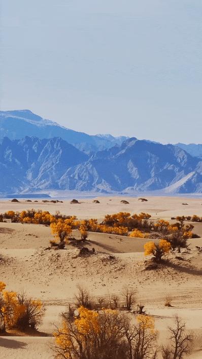 南靠巍巍崑崙山脈,北面是茫茫戈壁鹽灘,它夾在其中的沙漠化地帶裏,足夠野性自然,或獨秀,或連綿成片,讓人驚豔。