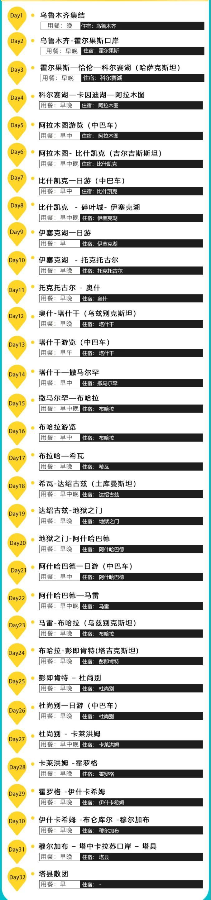 集合地點:烏魯木齊;散團地點:塔縣