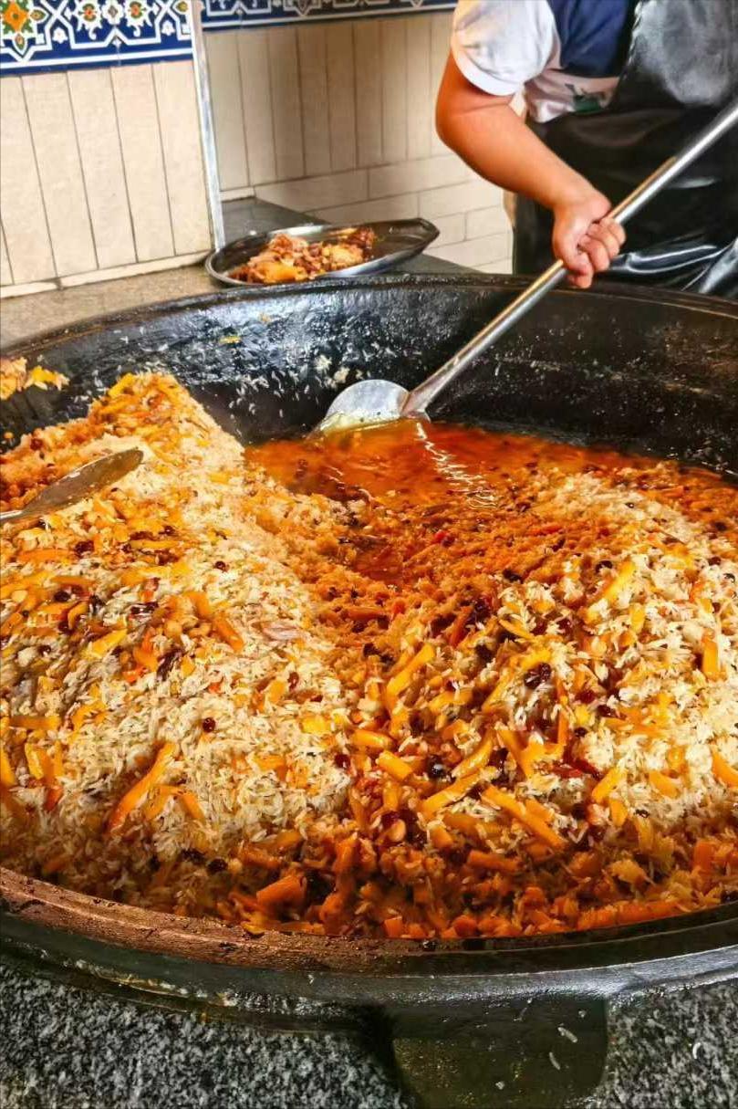 繼續西行至布哈拉,這座“絲綢之路的活化石”老城。日落時分,登上卡揚宣禮塔俯瞰全城,土黃色的建築羣被鍍上金光,時間彷彿在此凝固。