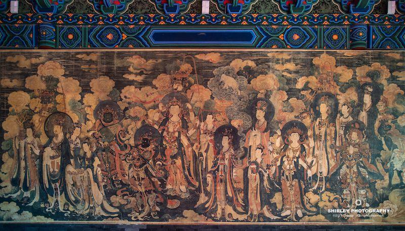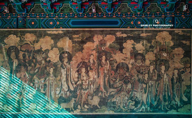 大雄寶殿內部沒有任何照明光源,除了各自的手電,因此短短20分鐘裏體驗感十足,很少有壁畫能如此純粹地近距離地仔細地欣賞。整體體驗妙不可言,收穫頗豐!雖然來之前覺得參觀真跡100元有些貴,但是真的沉浸在古代巔峯畫作帶來的審美愉悅裏了,100元一人的門票也不覺得什麼了。