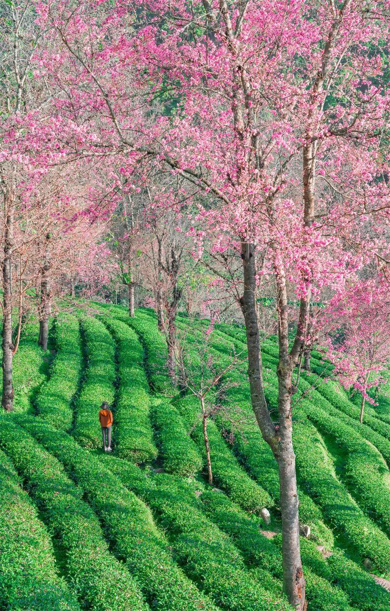 山谷裏那片如煙似霞的櫻花悄然綻放,