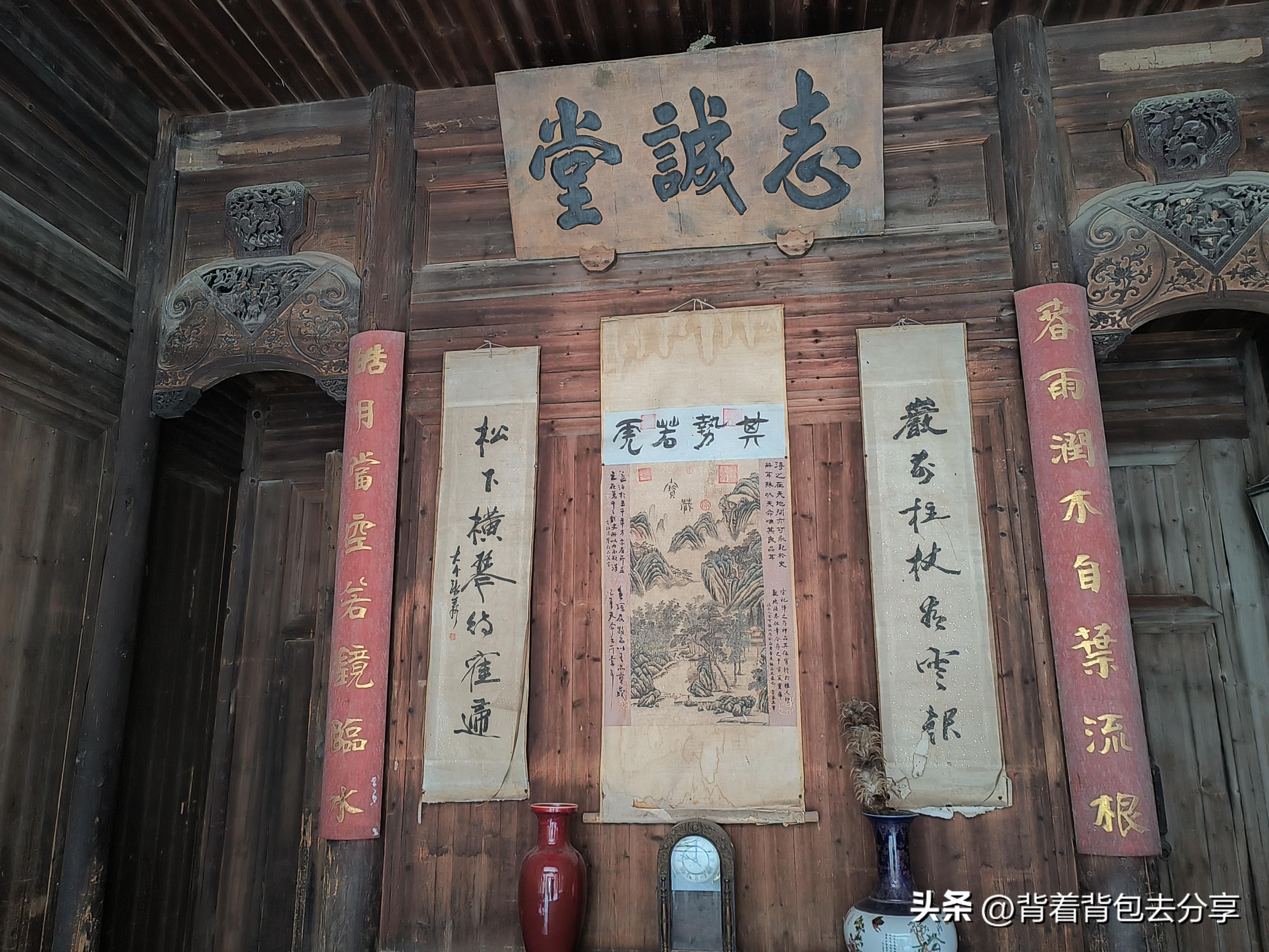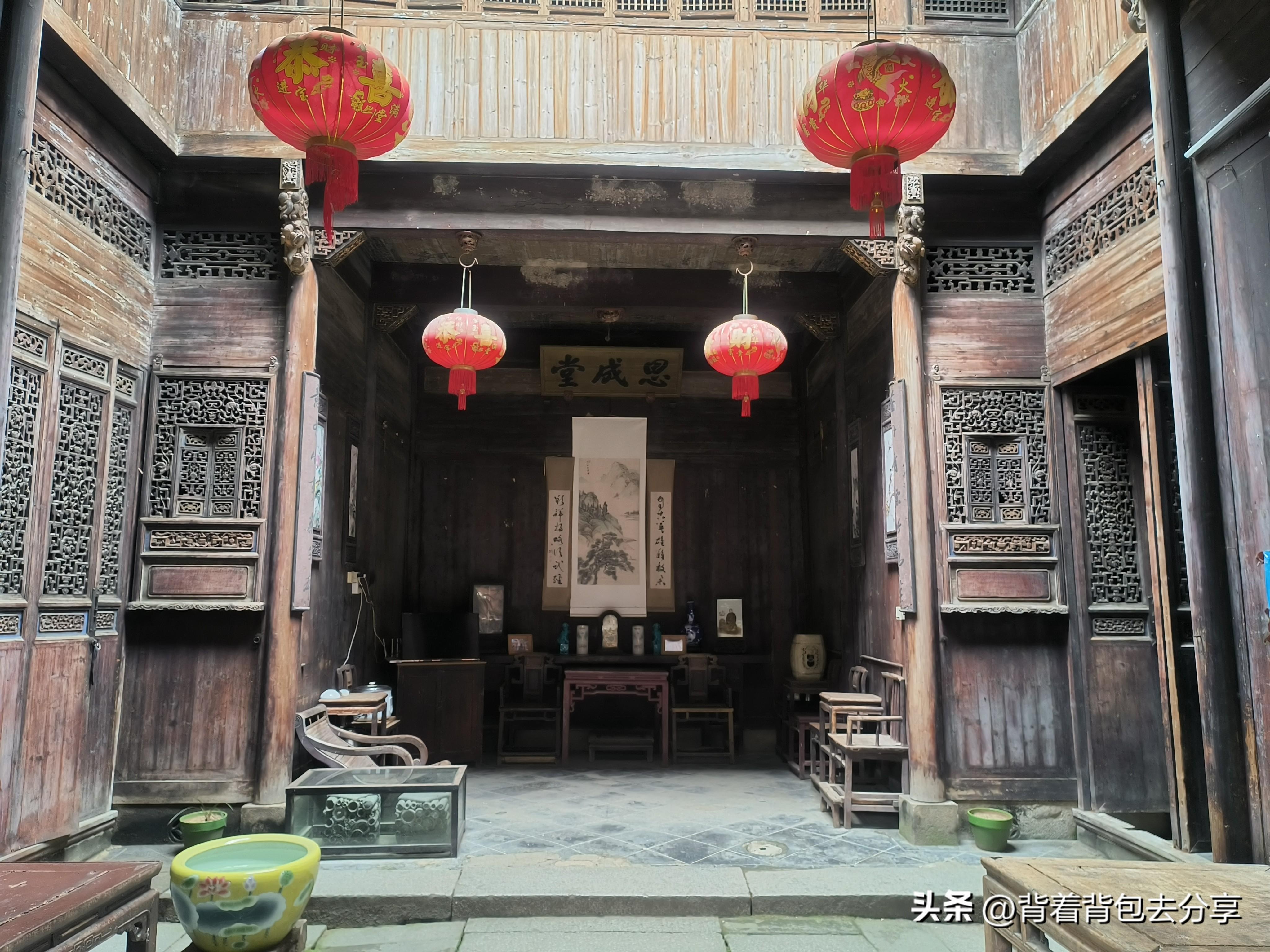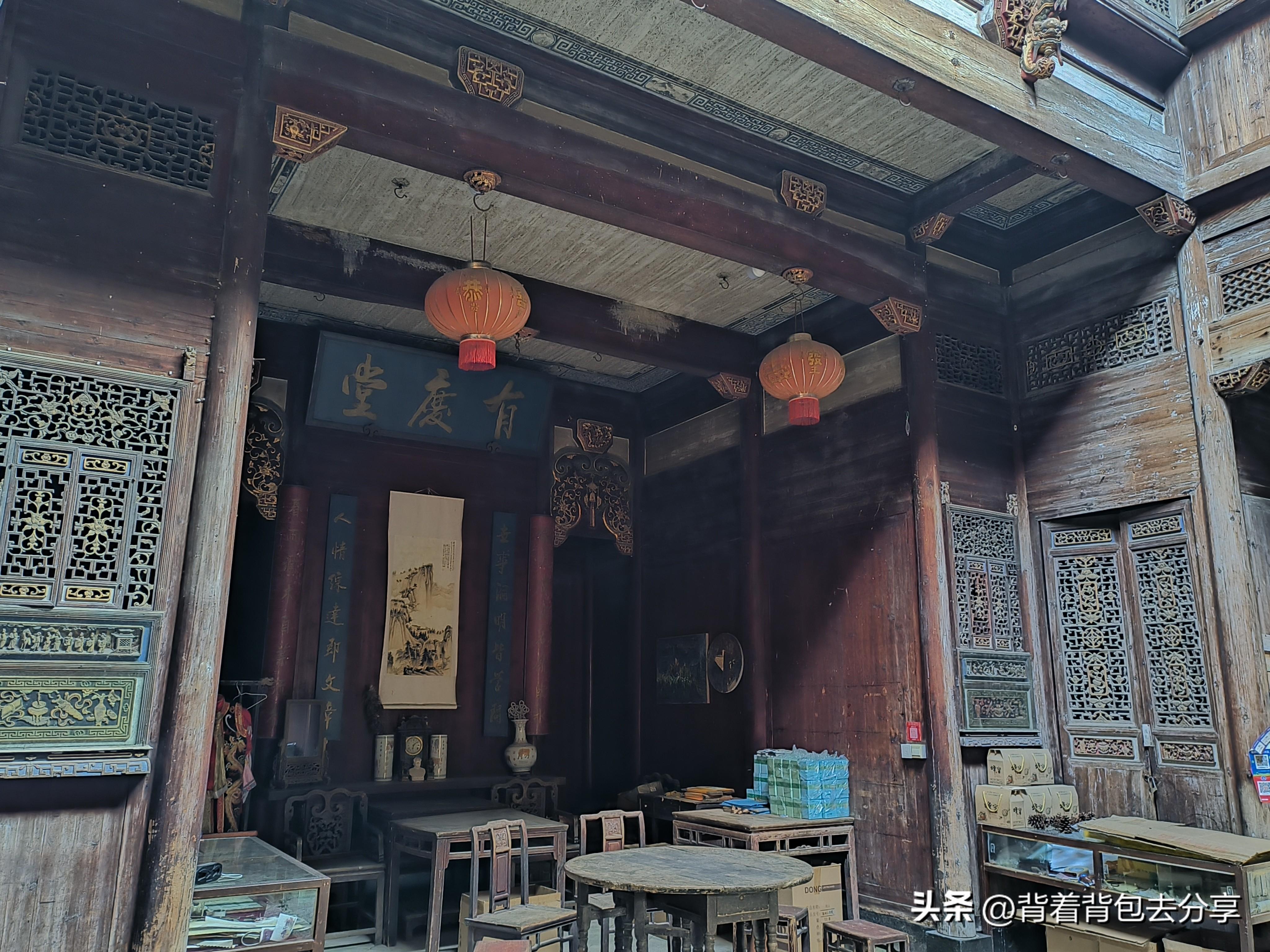之後,沿盧慈溪到志誠堂,這裏可以盧村古村落中最著名的建築景觀,也是盧村木雕樓羣的代表作,而所謂的徽州木雕第一樓,就是這座志誠堂,是盧村最精美的木雕建築,人物造型栩栩如生,隨後便來到了玻璃廳,是一處中西合璧結構,距今已有180多年,院內有三棵百年古樹,兩棵茶樹,一白一紅,另一株爲桂花樹,繼續向前便是,思濟堂門罩九世同堂徽商家族史,在二樓暗閣,可看清代小姐閨房,隨後,我與合肥搭子走進巷內