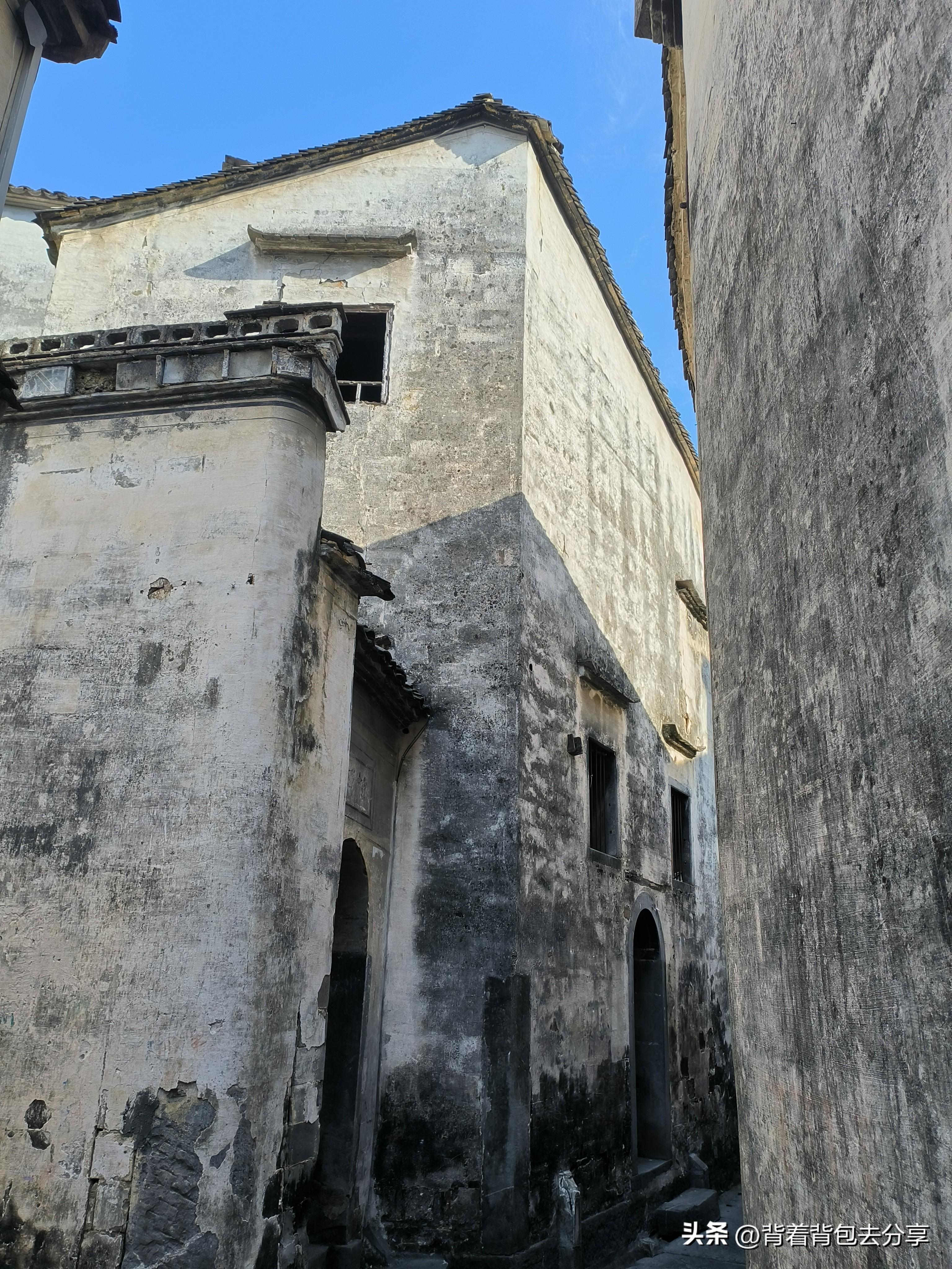 隨後,我便來到了燕翼堂,記得兒子那年,還在燕翼堂那裏休息,今天來到燕翼堂,門口早已沒有了木椅,這所燕翼堂是揚州八怪之一的羅聘的祖宅,爲明代徽派建築,此宅有很大的防火系統,採用磚石-細子-木板三種作爲材料,在當時,已經是很高的防火設計,出燕翼堂後,沿錯綜複雜巷道,過鍾英樓到環秀橋,這邊是欣賞山間村落最好的地方,是一個非常適合拍照打卡的地方,在環秀橋一側,有景區工作人員把守,原來,這裏是呈坎景區巷道出口,隨後來到長春大社