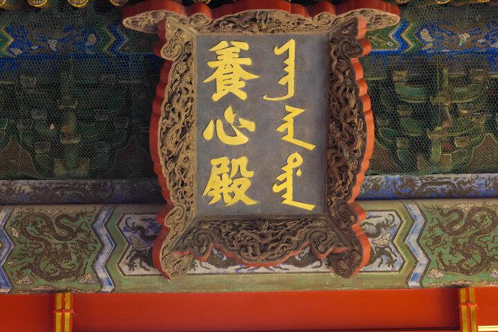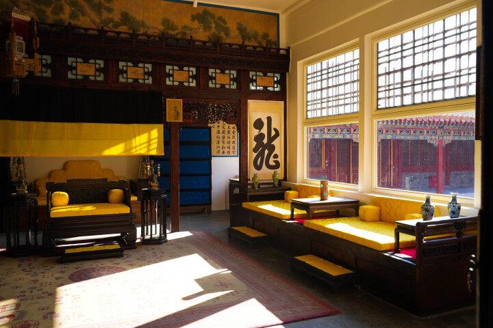 其中,養心殿正殿明間依照雍正以來舉行小朝會時的樣貌佈置,寶座上方懸掛雍正御筆“中正仁和”匾。養心殿西暖閣按照雍正乾隆時期佈置,懸掛着“勤政親賢”匾和“惟以一人治天下,豈爲天下奉一人”的對聯。三希堂因乾隆帝將王羲之《快雪時晴帖》、王獻之《中秋帖》和王珣《伯遠帖》收藏於此,撰《三希堂記》而聞名天下,所以三希堂復原的是乾隆時期的原貌。