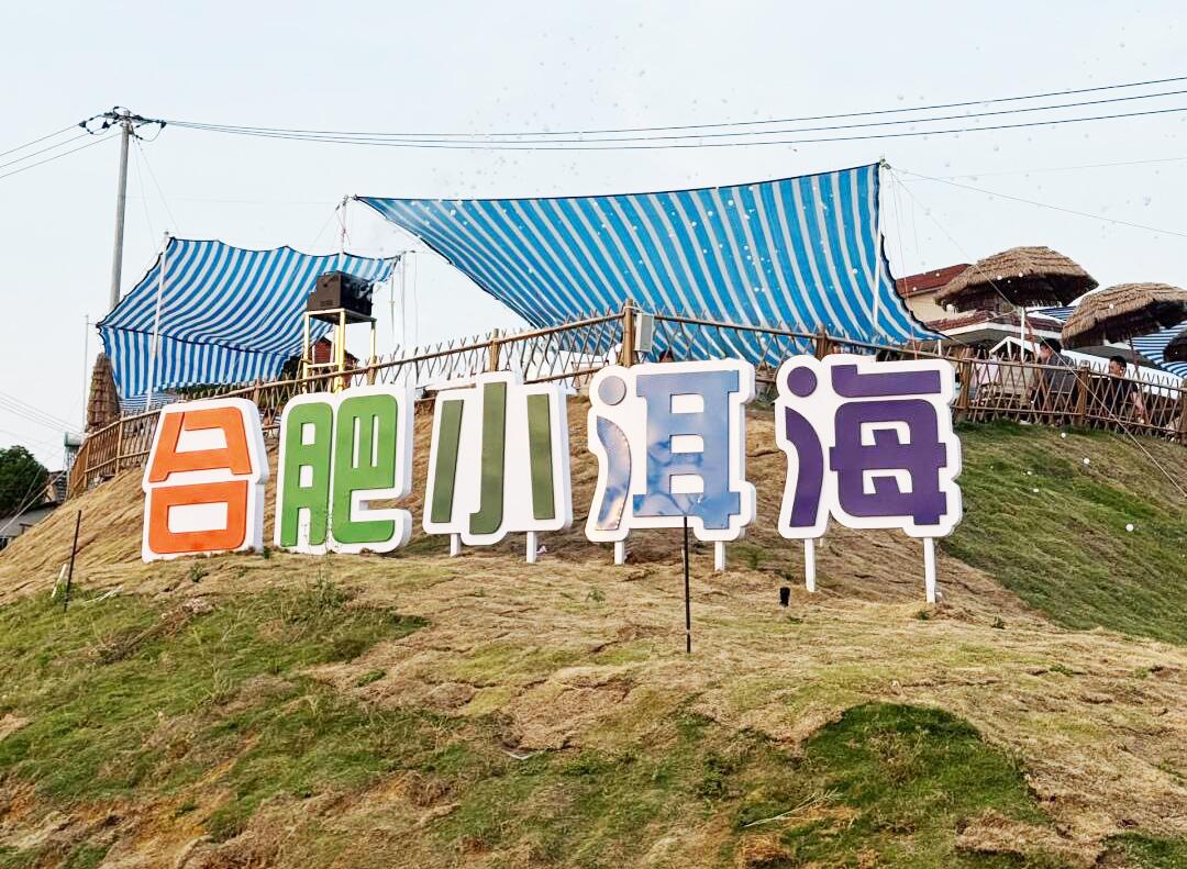 如果說中廟與姥山島呈現的是巢湖具有歷史人文底蘊的一面,那不遠處的雲水灣公園,這裏的巢湖則更透露着慵懶、鬆弛感的一面,爲巢湖之旅提供了另一種打開方式。還沒到公園,就被路邊一排具有文藝設計感的湖景咖啡館、餐廳吸引,路邊巨大的“合肥小洱海”招牌彰顯了這裏的景觀特色,充滿度假氛圍。