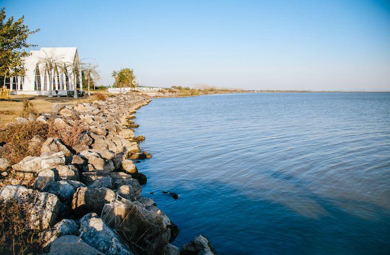 雲水灣公園緊貼着湖岸所建,以“海”爲靈感,白色禮堂、木棧道、人工沙灘、藝術裝置組成的景色,營造出一種“小三亞”或“小聖托里尼”的清新浪漫氛圍,非常適合拍照。尤其是天氣晴好的時候,合肥人真的可以在這看到屬於自己的“海”。如果你已看過巢湖的經典山水,不妨來這裏感受一下它的現代與浪漫。