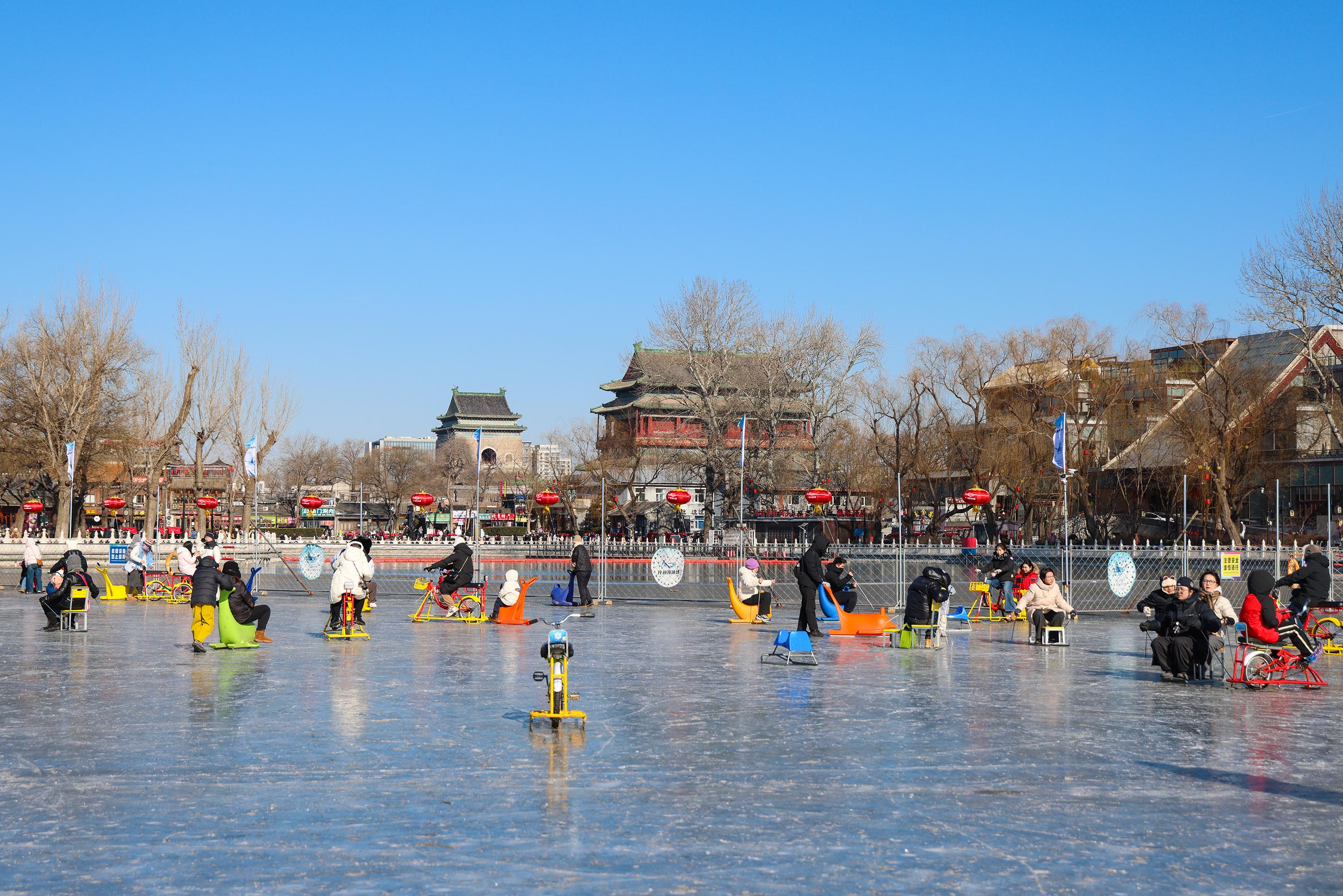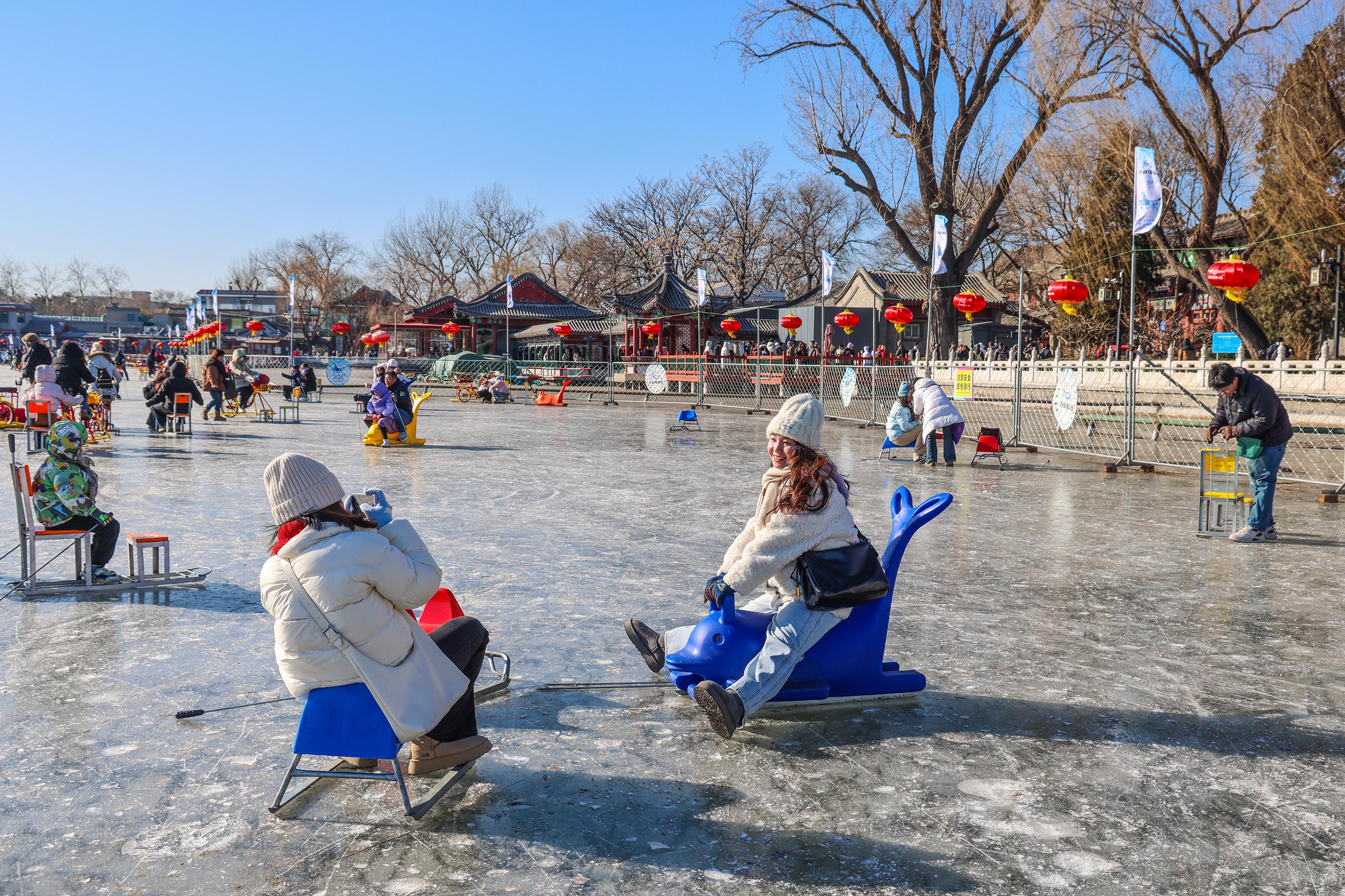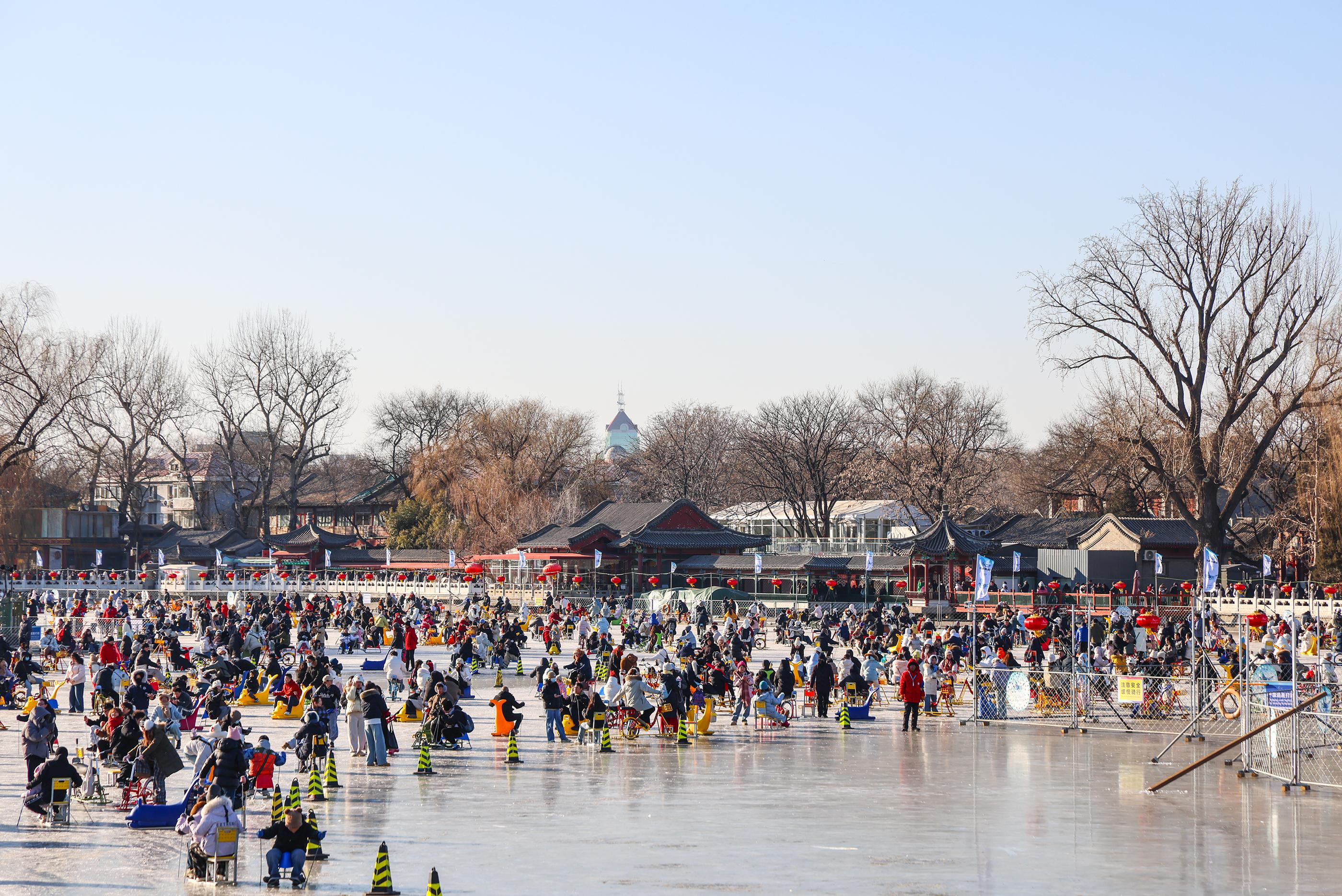 1月10日,北京什剎海前海冰場正式開放迎客。首個週末,雖然京城迎來大風降溫天氣,但市民遊客的冰上熱情依然高漲,紛紛前來體驗滑冰樂趣。