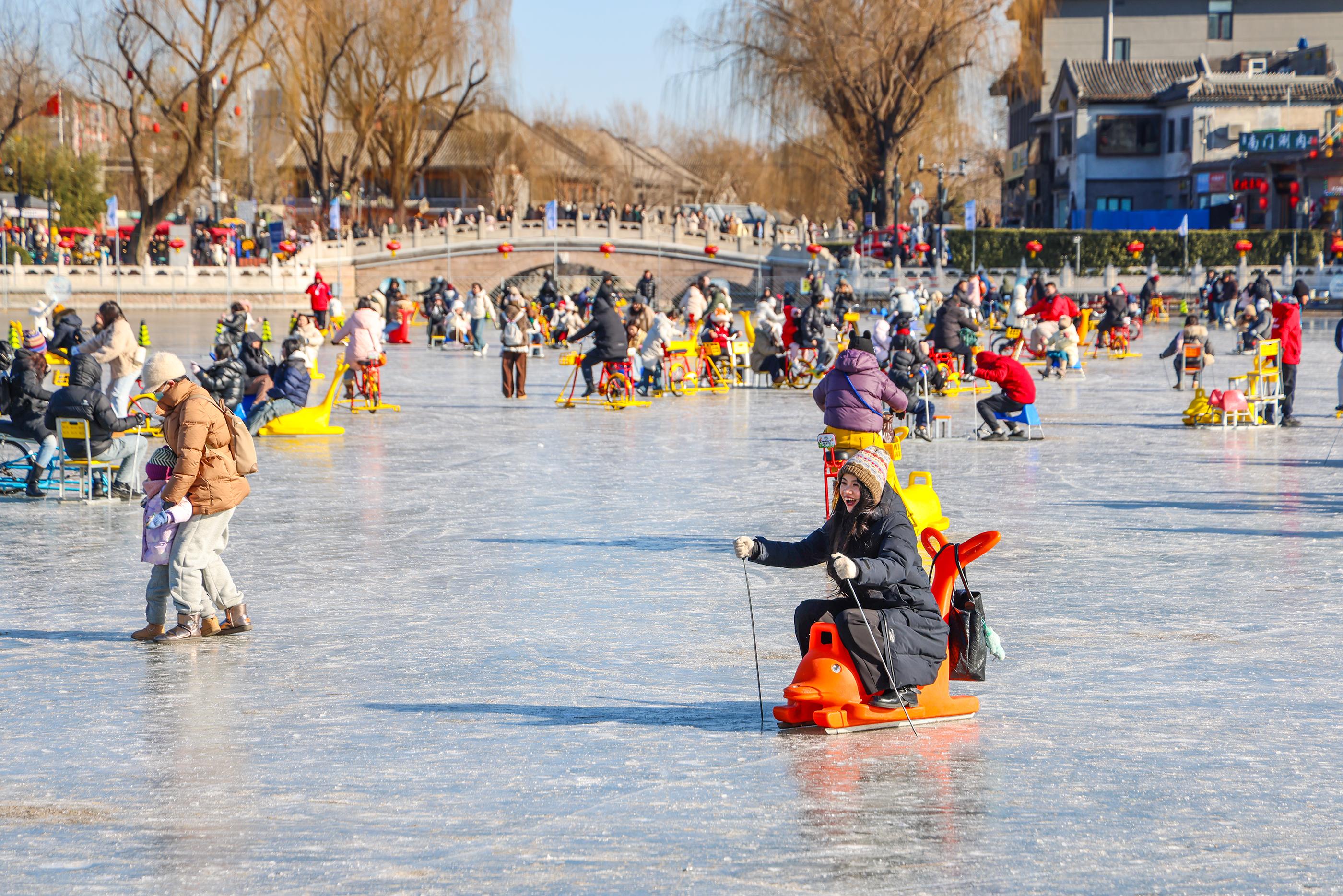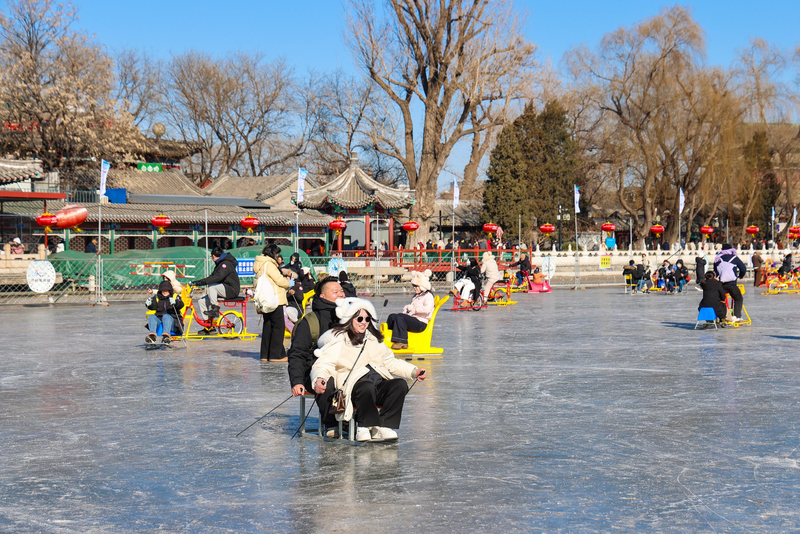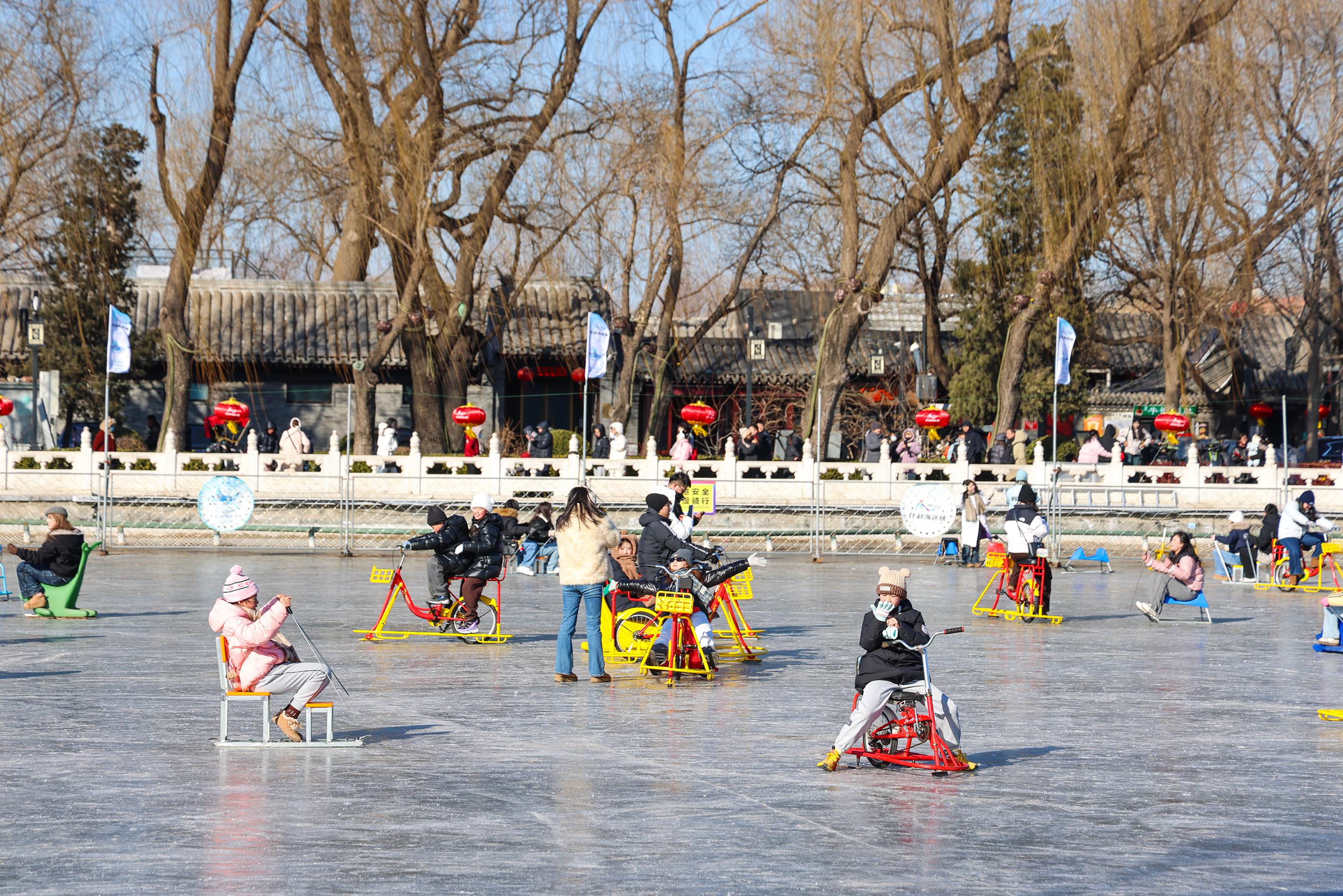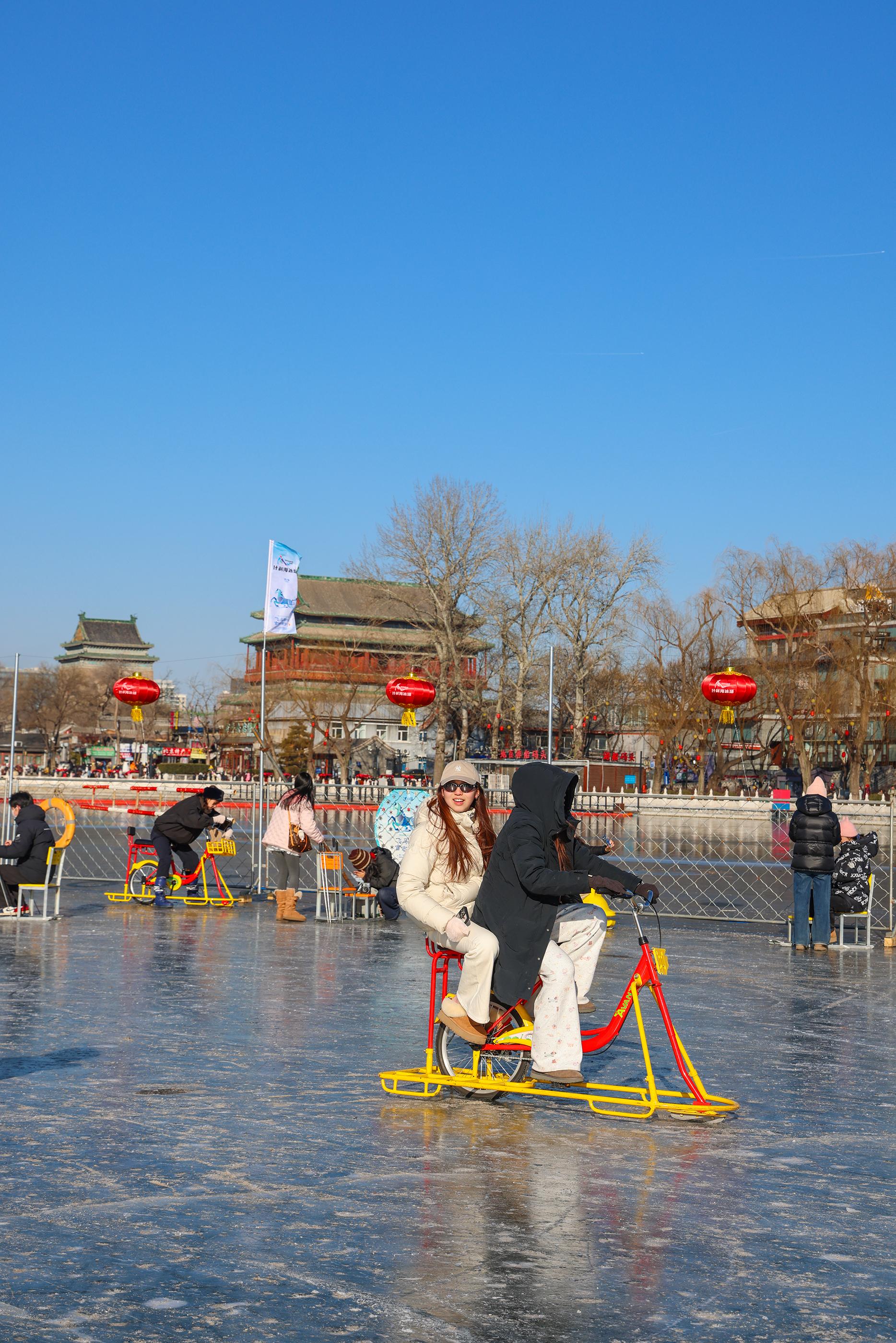 1月10日,北京什剎海前海冰場正式開放迎客。首個週末,雖然京城迎來大風降溫天氣,但市民遊客的冰上熱情依然高漲,紛紛前來體驗滑冰樂趣。