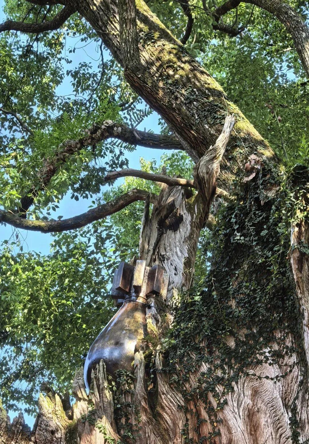 來到這裏有一種身臨其境的感覺,灼熱的陽光透過巨大樹幹落在綠油油的草坪上樹影斑駁,彷彿當年紅軍戰士在草坪上開會、訓練、散步、學習等場景歷歷在目。印象最深是在毛主席舊居旁的一棵古樟樹上有顆未爆炸的炸彈,驚歎!天佑主席!天佑紅軍!天佑中華!