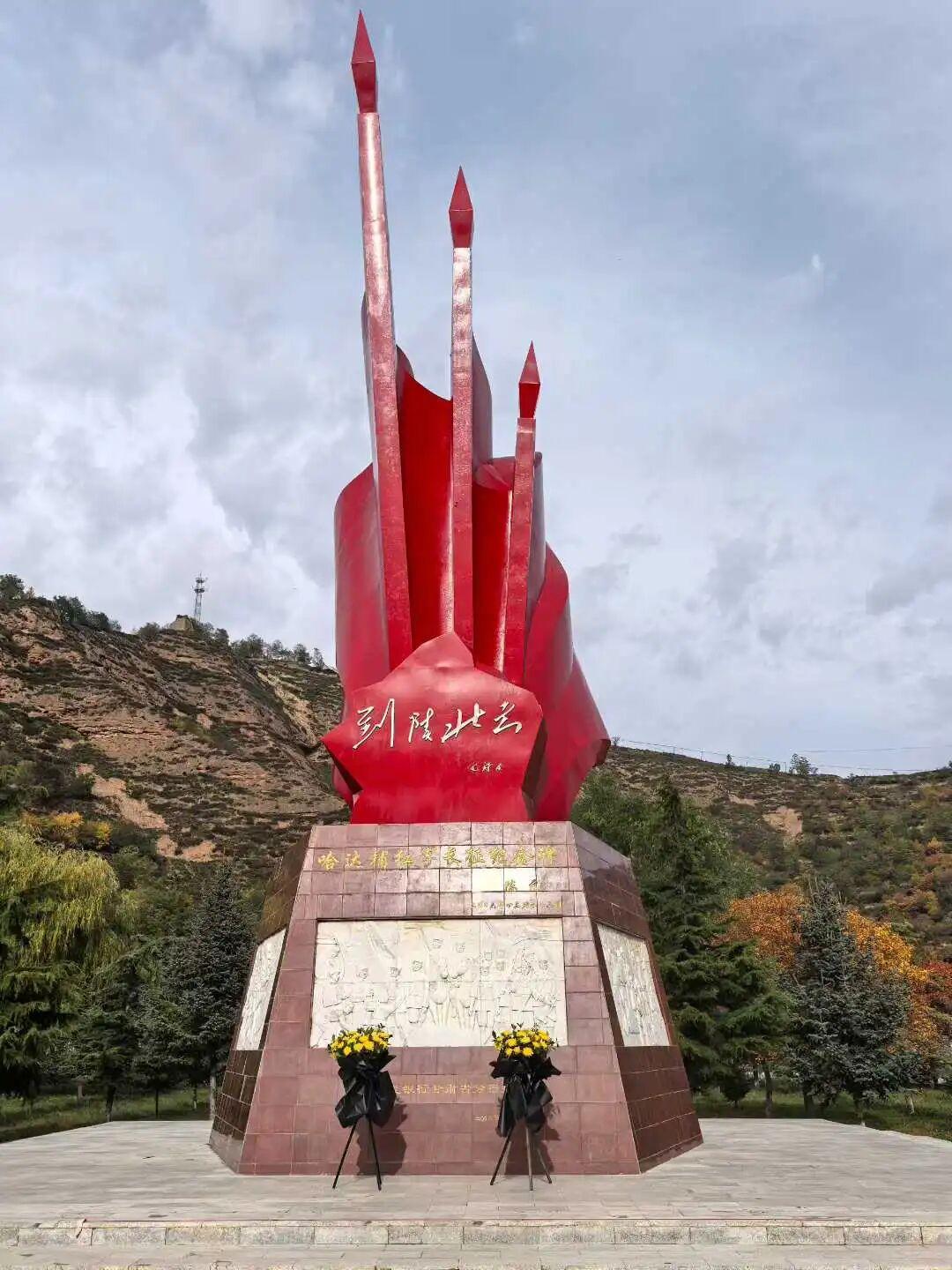 在甘肅的哈達鋪紀念廣場,高舉三面旗幟紀念碑上刻着毛主席親筆字“到陝北去”幾個銀閃閃的大字,彷彿穿越到1935年9月22日的哈達輔關帝廟內,毛主席攥着幾張皺巴巴的報紙擲地有聲向與會幹部宣佈“到陝北去”,這句話猶如一道光,照亮了中國革命前進的方向。榜羅鎮小學裏,毛主席接見先遣部隊官兵講話時詩興大發,即興朗誦自翻越岷山就醞釀於心的著名詩詞《七律•長征》。這首詩詞氣勢磅礴概括了長征的艱難歷程和紅軍革命的樂觀主義精神。