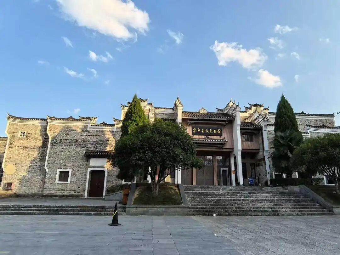 離開酒店不遠,在寬闊的馬路上端橫跨巨大的三顆紅五角星地標,葉坪革命根據地舊址到了,青瓦房在微風中靜立,一座宗祠訴說着革命的前世今生。一下子把我們帶回到1931年,第一次全國蘇維埃代表大會在此召開,成立了中華蘇維埃共和國,這塊土地就是誕生地,毛主席的稱號也是在這裏第一次被叫響。