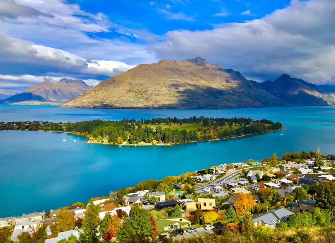 新西蘭的皇后鎮是一個被南阿爾卑斯山包圍的美麗小鎮,也是一個依山傍水的美麗城市。皇后鎮全處都是觀光地點,夏季藍天豔陽,秋季爲鮮紅與金黃的葉子染成繽紛多彩的面貌,冬天的氣候清爽晴朗,還有大片覆着白雪的山嶺,而春天又是百花盛開的日子。四季分明,各有着截然不同的面貌。