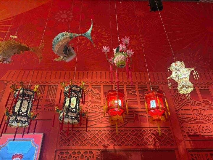 “光轉春輝”展區內,造型各異的燈綵點亮節日氛圍。商丘魚燈傳承人王站手裏提着流光溢彩的魚燈,吸引不少遊客駐足。“現在我們推出了魚燈材料包,小朋友幾小時就能做出自己的作品。”王站介紹,在商丘,新春舞魚燈是世代相傳的習俗,象徵年年有餘,“希望通過創新,讓商丘魚燈走出河南、走向世界,讓更多人感受中國燈綵的魅力。”