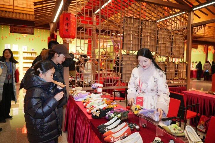 “非遺年禮”市集彙集衆多特色非遺產品,非遺傳承人現場講解示範、邀請觀衆體驗,讓遊客在買年貨的過程中,感受春節的年俗、年禮、年味。