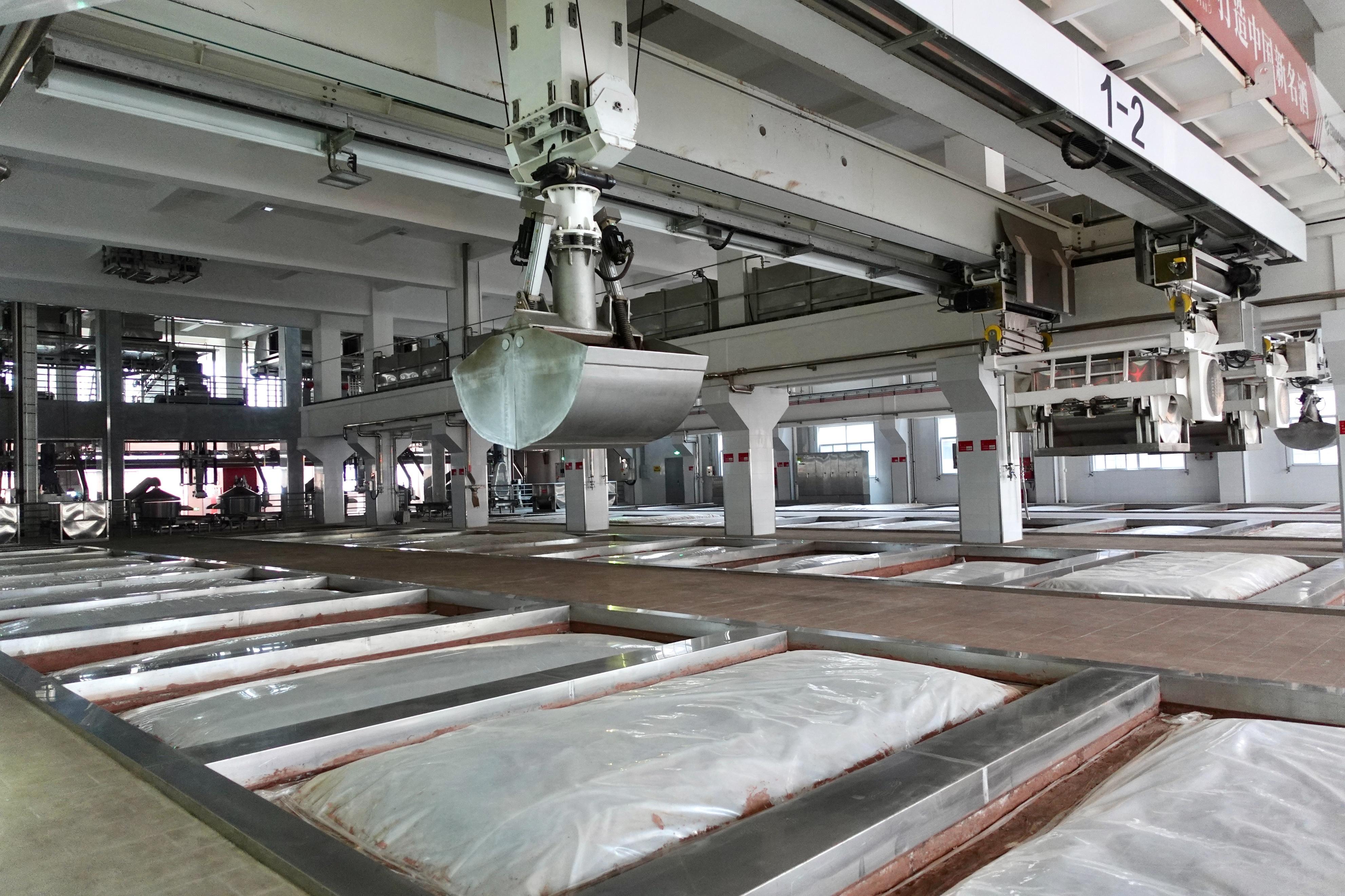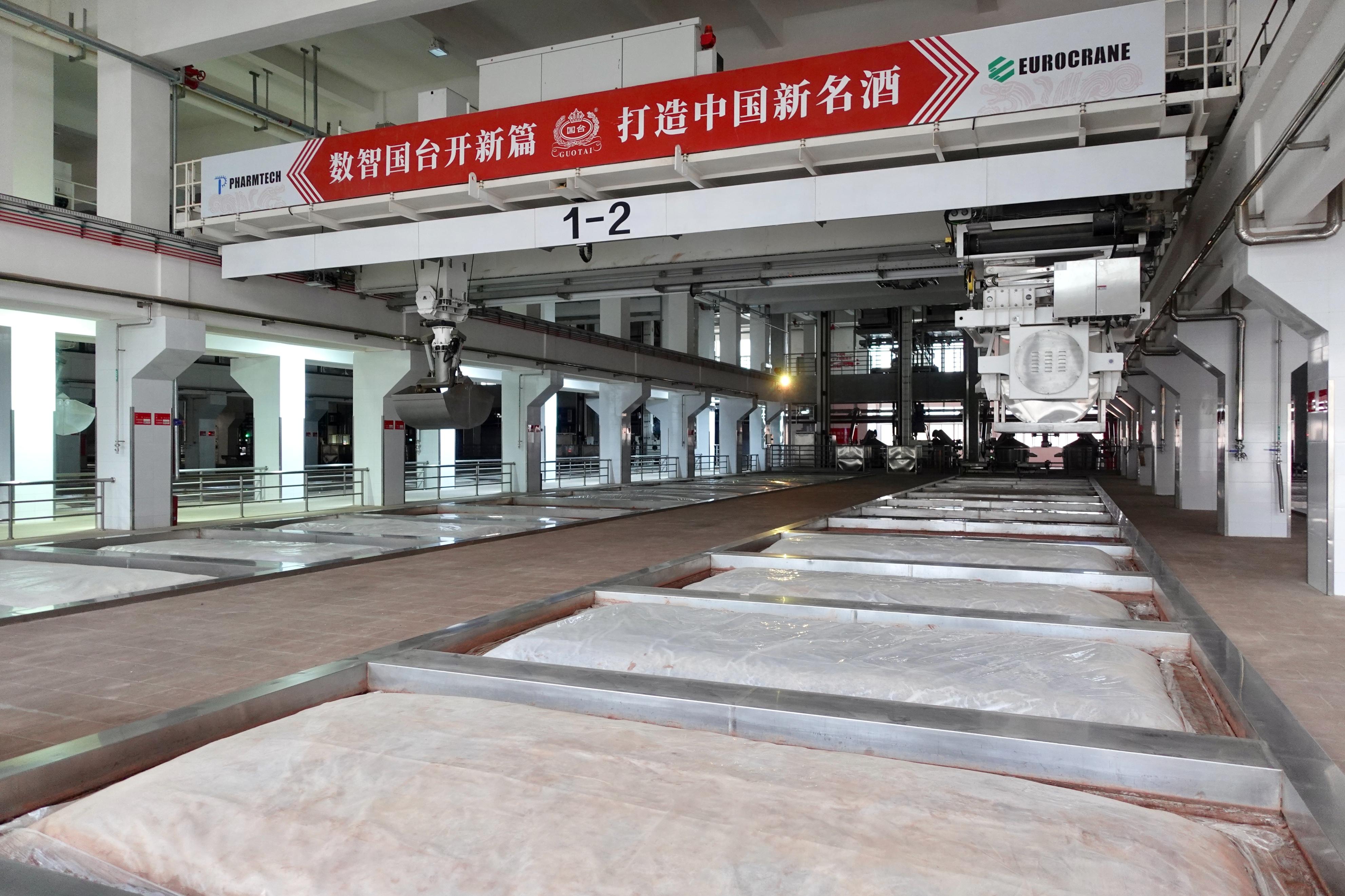 而且在金沙酒業內,還能看到傳統與智能化的融合。十八車間內,工人手持遙控器操作設備起落工作。八十年代的釀造車間內,房頂上滿是黢黑斑駁,講解員說,那是時間沉澱下來的微生物菌羣,是它們使得釀造出來的醬酒更加醇甜、醇柔。