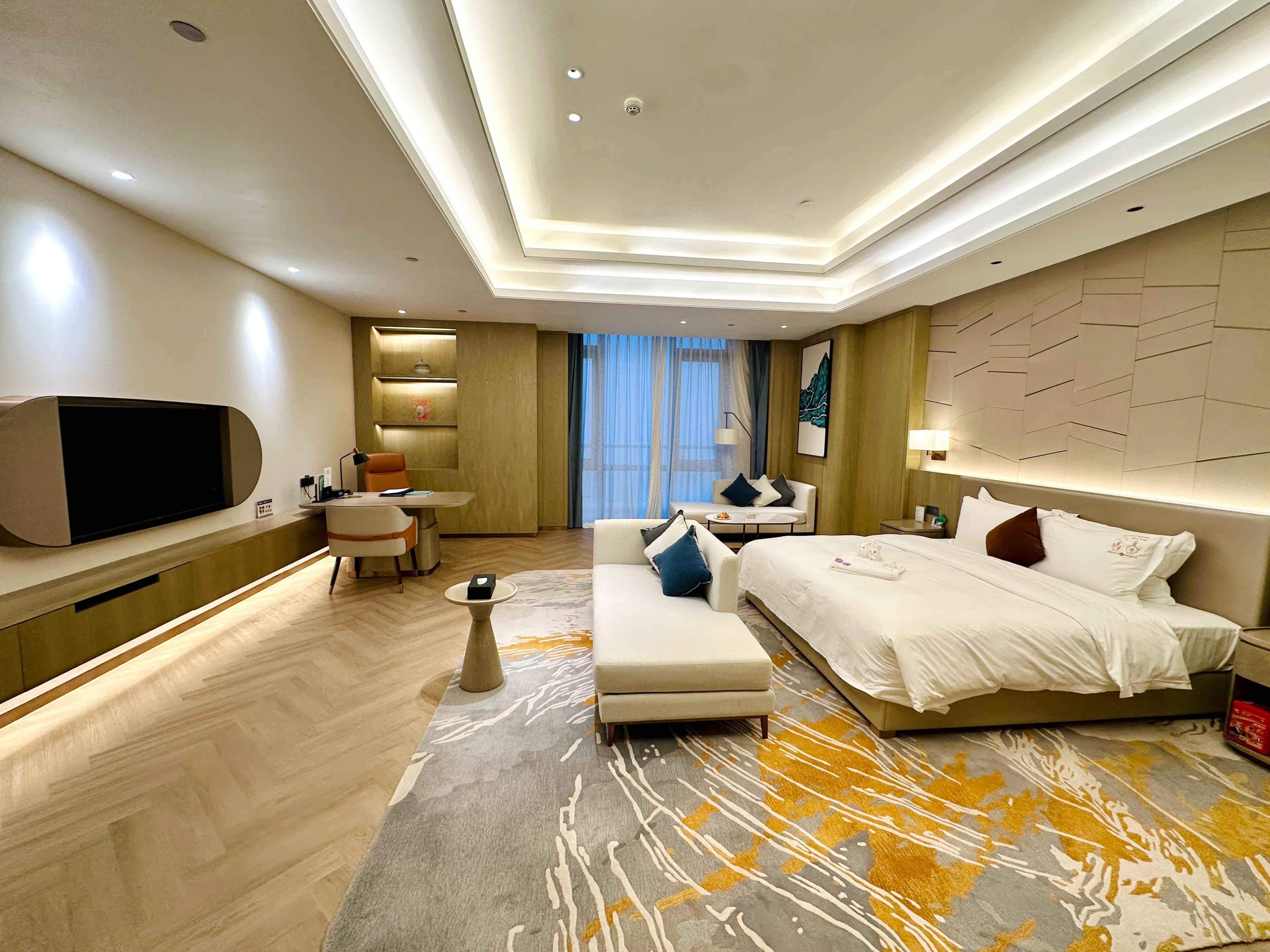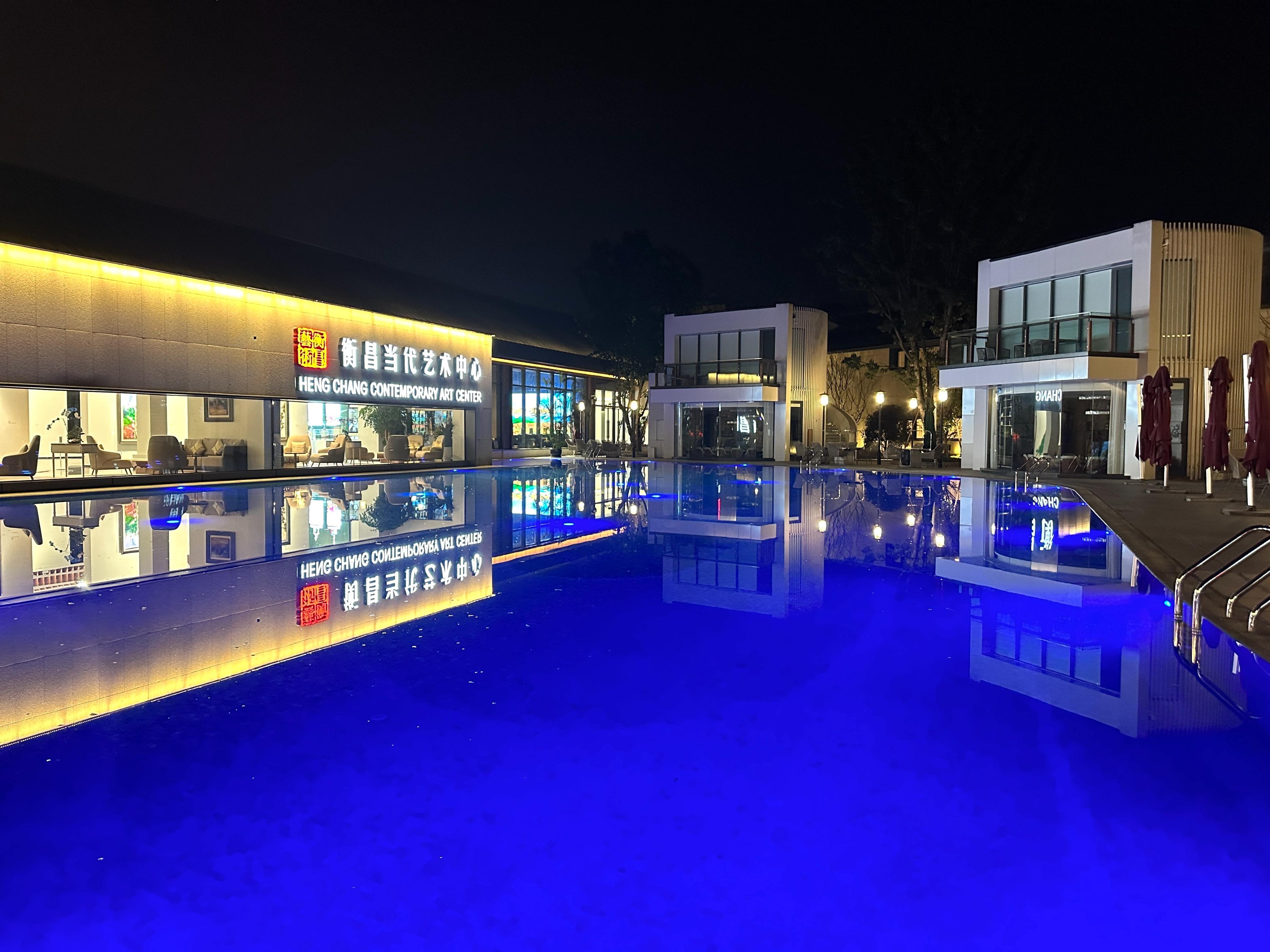 穿過長長的藝術長廊就到了酒店房間,環境非常不錯,藍色泳池在夜幕下絕美,泳池邊彈唱的帥哥美女,讓我感覺這美好的時光顯得格外短暫,不願離去。