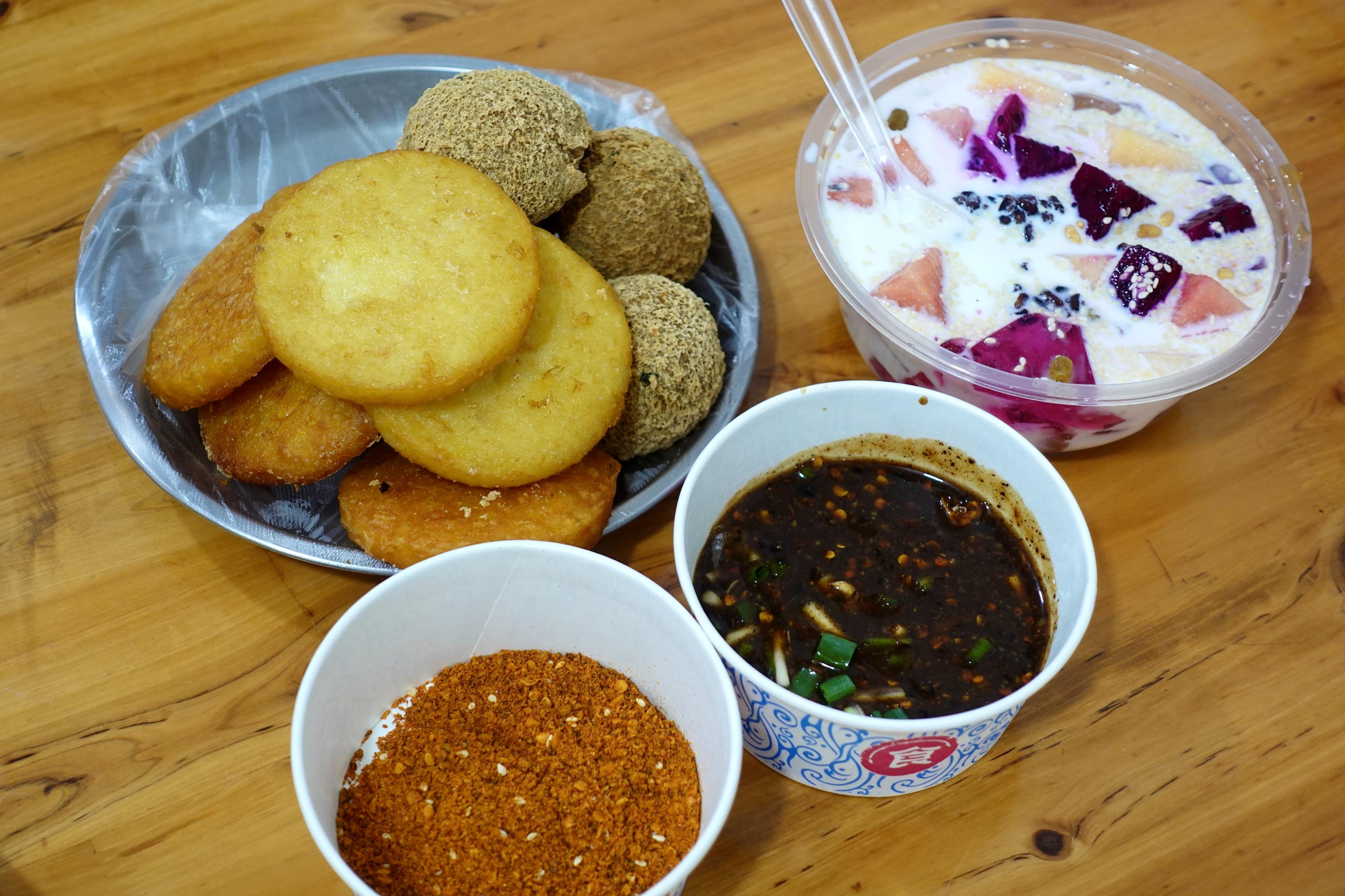 名城戀愛豆腐的戀愛豆腐、洋芋粑粑、豆腐圓子都非常不錯。戀愛豆腐喫起來口感很嫩,配上靈魂蘸醬真的絕了。而且這個蘸醬很獨特,裏面加了折耳根,喫起來味道很獨特。洋芋粑粑和豆腐圓子炸得外酥裏嫩,蘸料有幹碟辣椒麪和蘸醬兩種,兩種蘸料味道都不錯。