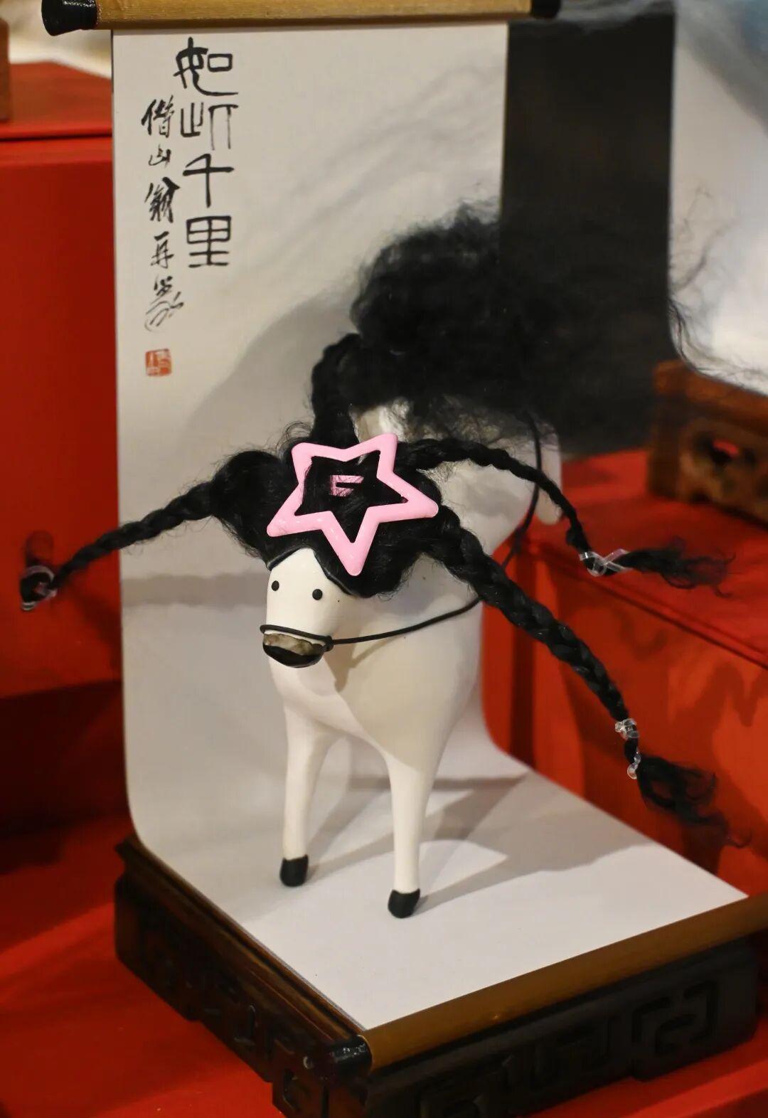 研發初期,團隊反覆研讀《如此千里》的筆墨細節,提取奔馬的動態精髓,僅草圖就繪製了上百張。在造型設計上,團隊曾嘗試扎辮子等多種髮型,最終確定爲基礎長髮造型,“就是爲了給消費者留出DIY空間,相信網友的創意是無限的”。王芝說,技術層面的挑戰同樣不小,由於“馬彪彪”採用前蹄着地的動態造型,在軟陶烤制過程中多次出現坍塌、斷裂問題。團隊經過數十次試驗,最終採用“搭骨架+填充支撐材料”的方案,才讓小馬實現了穩定站立,呈現出後蹄騰空的靈動姿態。