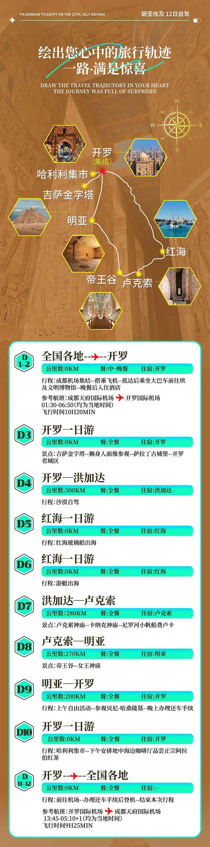 主要城市與景點:行程覆蓋開羅、洪加達(赫爾格達)、盧克索、明亞等埃及重要城市。