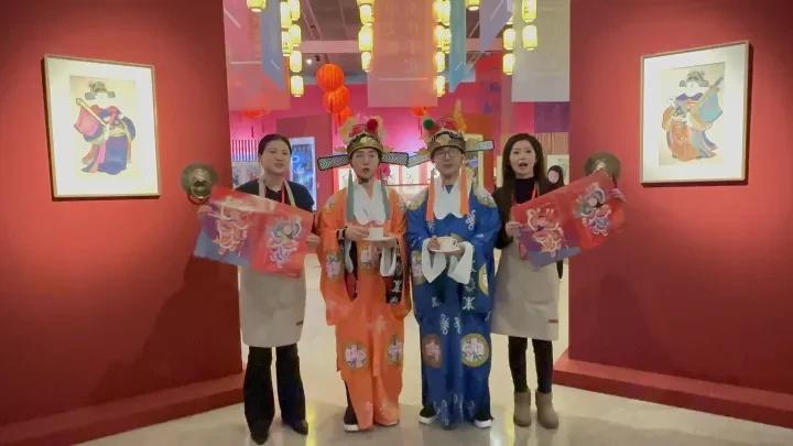 “看,門神在招手!”2月4日立春,中國非物質文化遺產館內,一聲孩童的歡呼吸引了遊人的注意。循聲望去,兩尊近3米高的“機甲門神”巍然矗立,色彩明豔奪目,其中一尊正緩緩抬起手臂,向圍觀的觀衆致意。這正是“迎春——綿竹年畫中的年俗與新韻”主題展的生動一幕。展覽展出150餘幅綿竹年畫精品,不僅復刻了春節的記憶圖景,更讓古老年畫從牆上“走”下來,真正“活”在了當下。