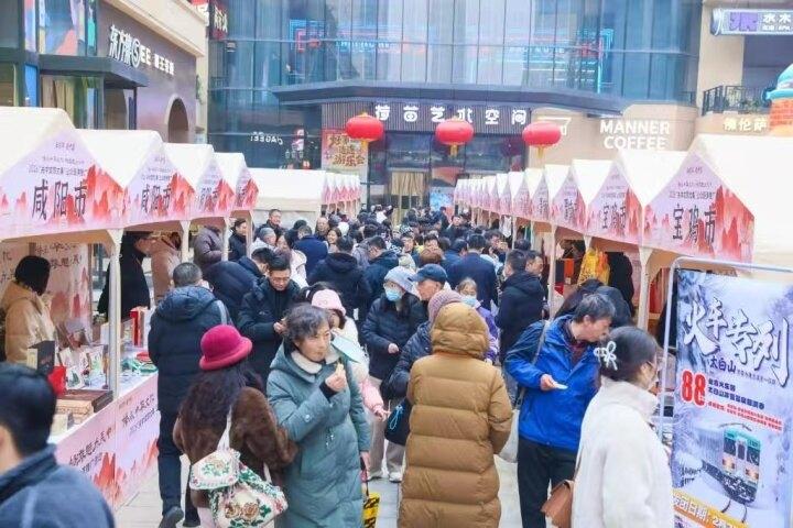 由關中平原城市羣區域合作辦公室、關中平原城市羣文化旅遊合作聯盟主辦的“關中文旅大集”上,關中平原14座城市攜文旅好物、年俗非遺齊聚一堂,沉浸式展演、好物展銷、線上直播同步開啓,讓市民遊客在家門口體驗關中年味。
