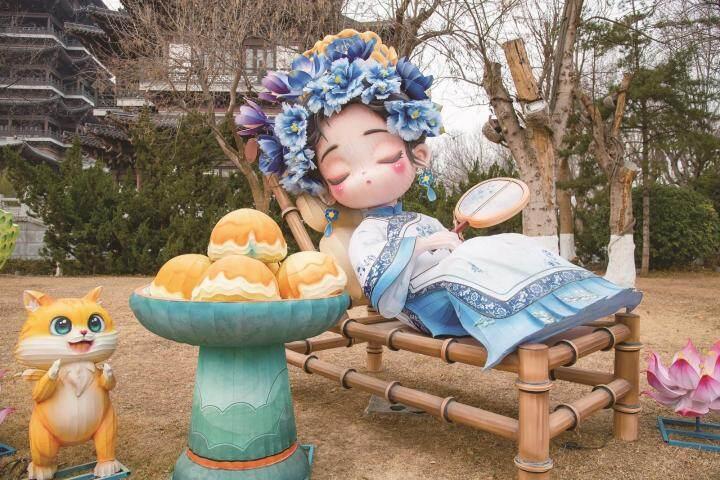 首次亮相的3.0版“湖畔雨荷”是本屆迎春花燈會的亮點之一,高度約2米,Q版設計,融入現代卡通元素,人物面孔俏皮活潑、姿態各異,3.0版“湖畔雨荷”更貼近年輕羣體喜好。