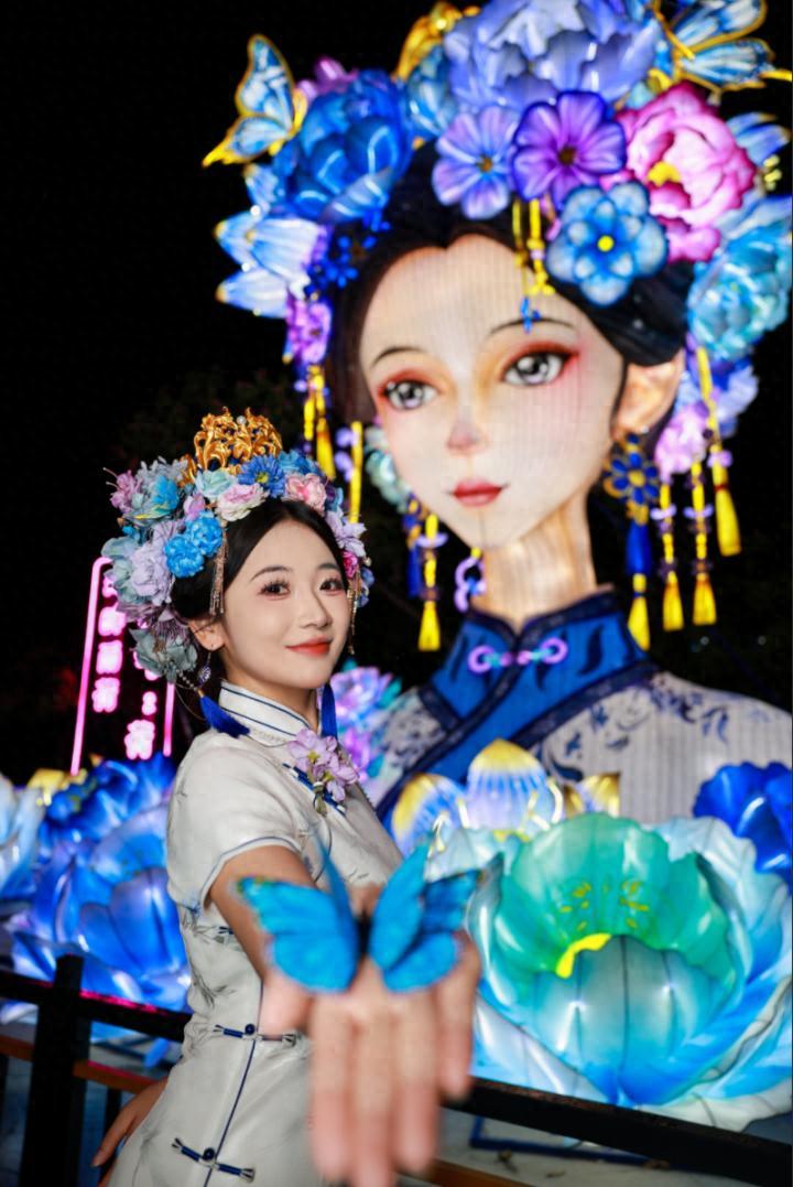 2024年底,由濟南泉成旅遊集團有限公司打造的12米高的1.0版“湖畔雨荷”花燈在大明湖南岸亮相,“簪花古裝少女”的形象,搭配眨眼、亮燈的動態設計與《壁上觀》背景音樂,一亮相便引爆社交平臺。