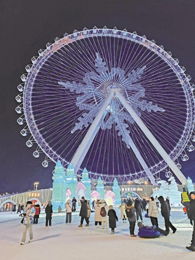 有人在雪花長廊下伸手接住飄灑的雪花、有人在雪花摩天輪上俯瞰冰城的萬家燈火,有人在認真地擺弄童年玩具“冰嘎”,有人拉着雪圈打轉,有人從冰滑梯上尖叫着滑下……雖然冷,但是這份寒冷中的浪漫如此夢幻、溫暖的服務細節如此走心,這讓人們的冰雪大世界之旅更加珍貴,每個人臉上都帶着笑,自內心深處湧動出深深的喜悅。“我以爲只有孩子喜歡玩雪玩冰、喜歡冰雪大世界,沒想到我自己來了,竟也變成了一個孩子。”南京遊客阮女士說。(作者:中國旅遊報記者 曹燕;編輯:楊碩)
