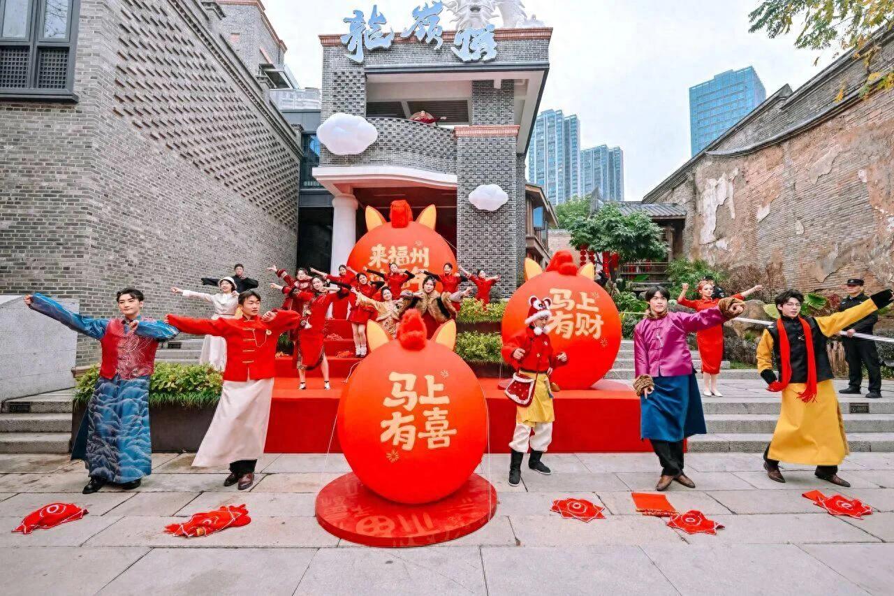 領略過閩式大集的煙火氣,移步金銀裏廣場“品福藝”。記者看到,這裏正上演《雙杭尋夢·商幫賀年》新春互動巡遊:茶莊掌櫃、綢緞老闆穿行其間;喜娘用福州方言送上吉祥賀詞;舞蹈短劇《錦繡華年》裏,扮演俄羅斯商人的演員輕撫綾羅綢緞,眉眼間盡是讚歎,悄然訴說着福州與世界相遇的繁華往事。