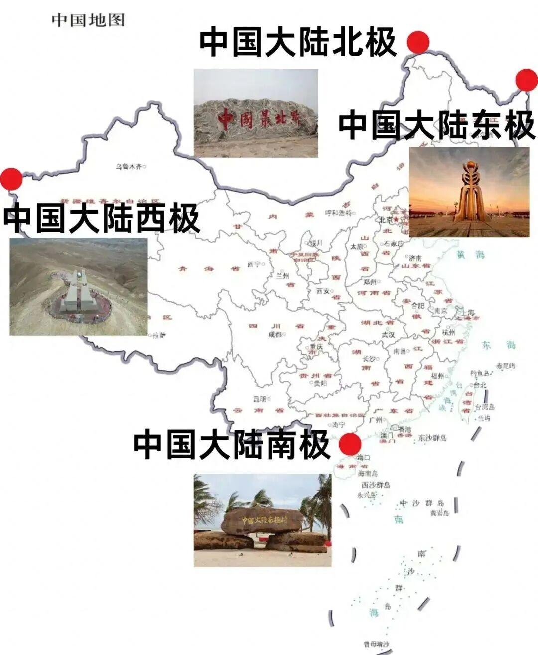 (東極撫遠、北極漠河、西極烏恰、南極湛江)