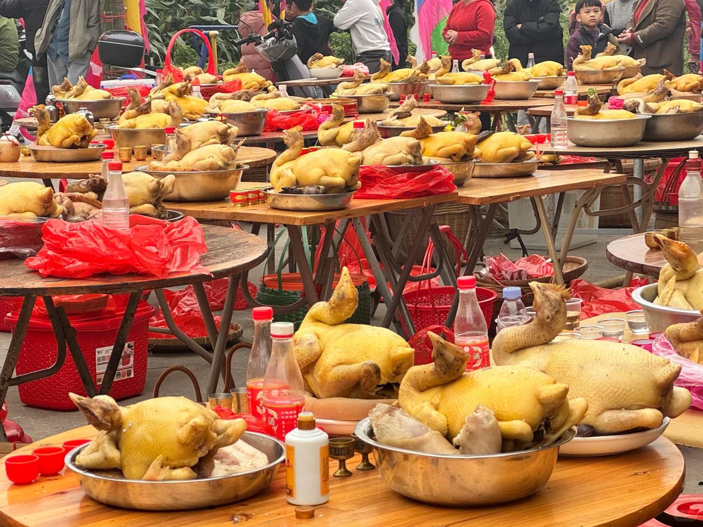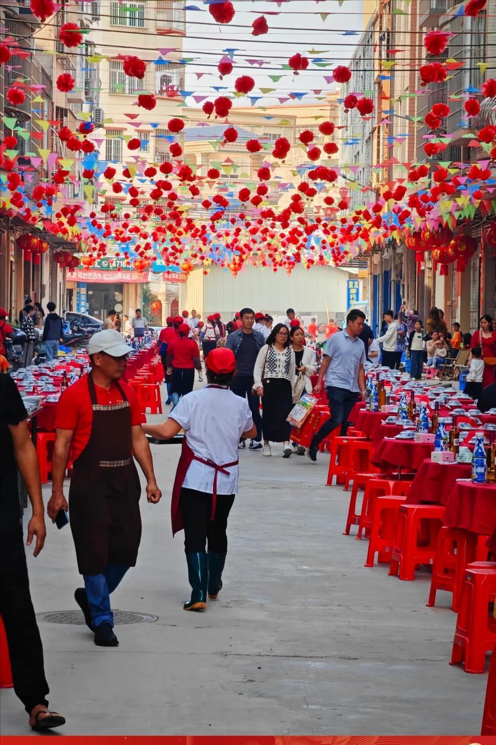 全村沿街擺起流水席,少則幾十桌,多則上百桌。