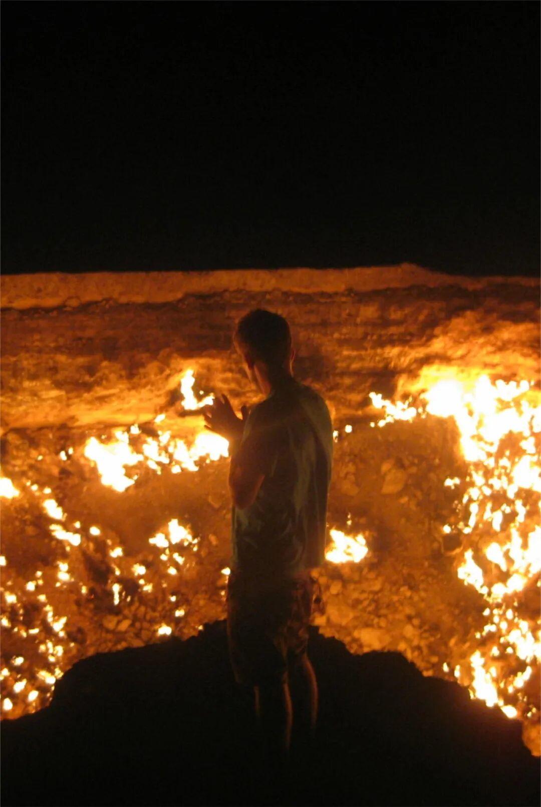 夜幕下,烈焰與星空同框,宛如外星景觀。坑邊溫度高達50℃,需保持至少5米安全距離。