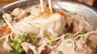 再加入米粉和肉片,煮至入味,