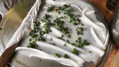 用米漿做成的餃皮,晶瑩剔透,