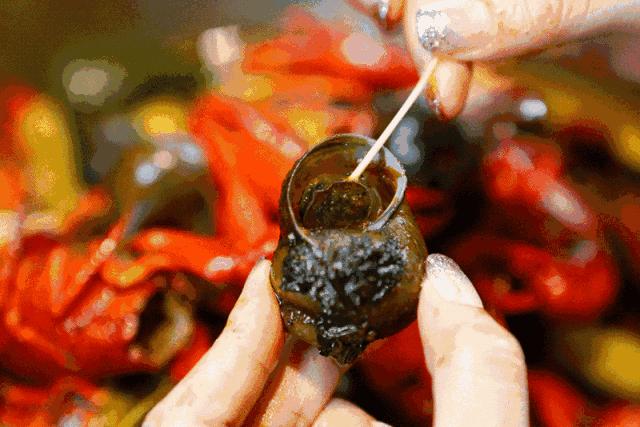 田螺、石螺,加上酸筍、紫蘇、辣椒爆炒,