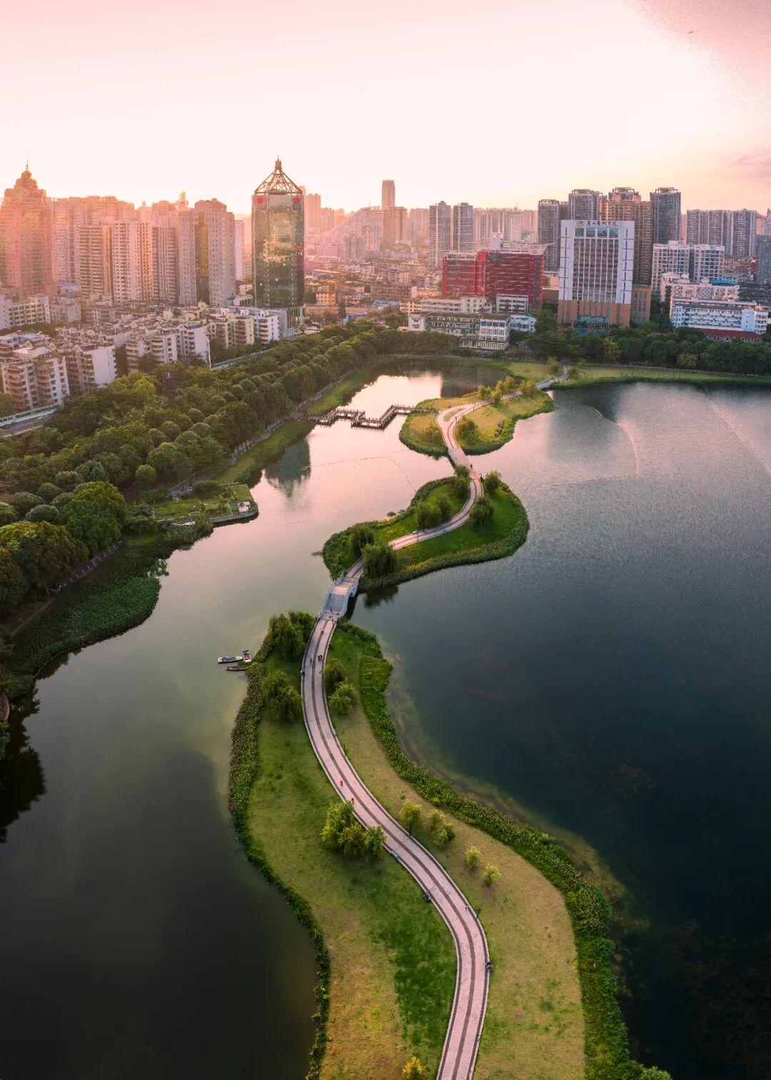 它像一顆翡翠鑲嵌城中,