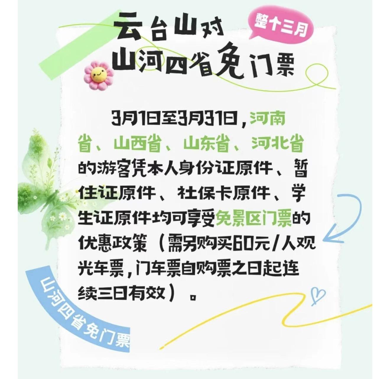 ④河南雲臺山景區3月面向河南省、山西省、山東省和河北省的遊客免門票。