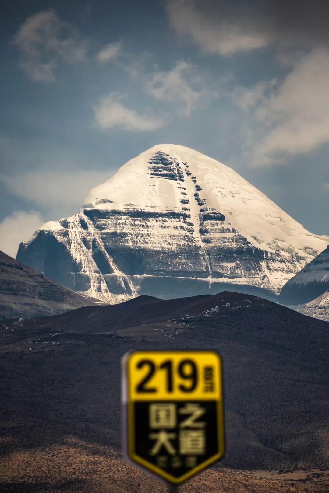 △圖/西藏阿里普蘭縣岡仁波齊峯與219路標