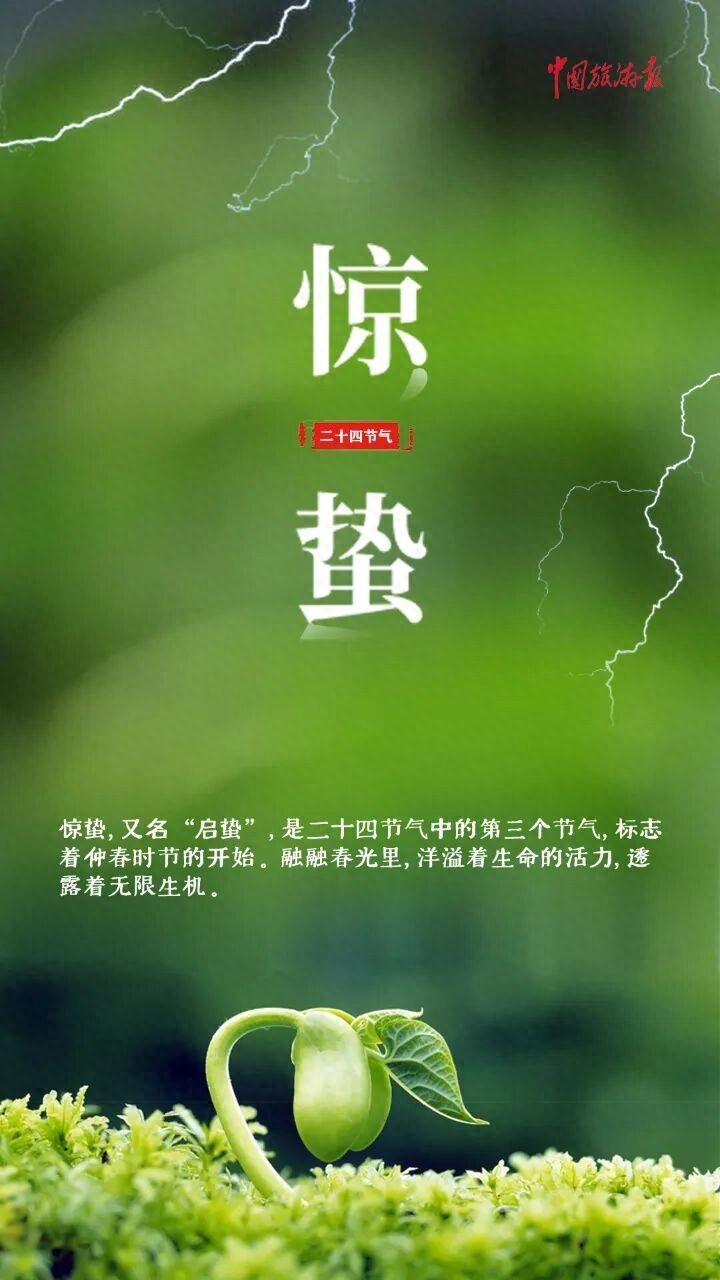 “驚”從何來?其源在雷。《月令七十二候集解》有載:“驚蟄,二月節。《夏小正》曰:正月啓蟄,言發蟄也。萬物出乎震,震爲雷,故曰驚蟄。”春雷滾滾,攜春雨瀟瀟席捲大地,喚醒蟄伏的生機。陶淵明詩曰:“仲春遘時雨,始雷發東隅。”韋應物亦曰:“微雨衆卉新,一雷驚蟄始。”向我們展示的,正是這般天地驚動、草木初萌的動人氣象。