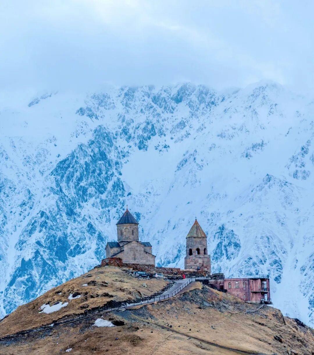 圖:格魯吉亞雪山下的格格蒂聖三一教堂