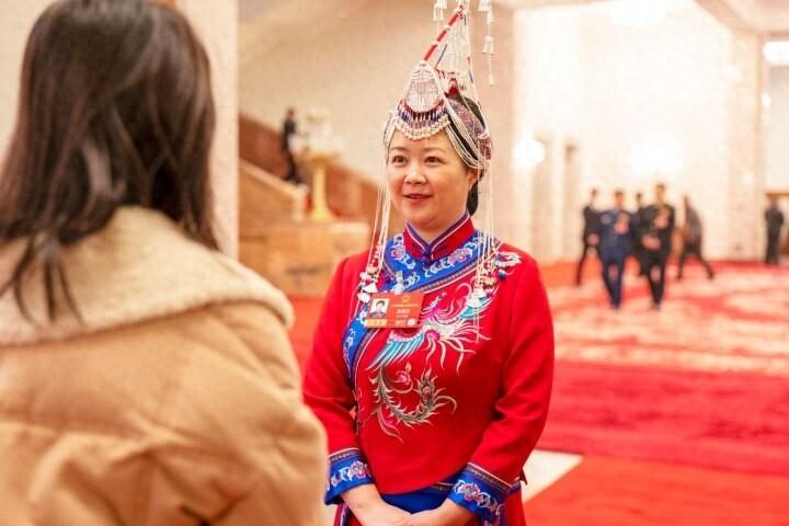 全國人大代表、浙江省麗水市景寧畲族自治縣縣長藍景芬 新華社記者 王釗 攝