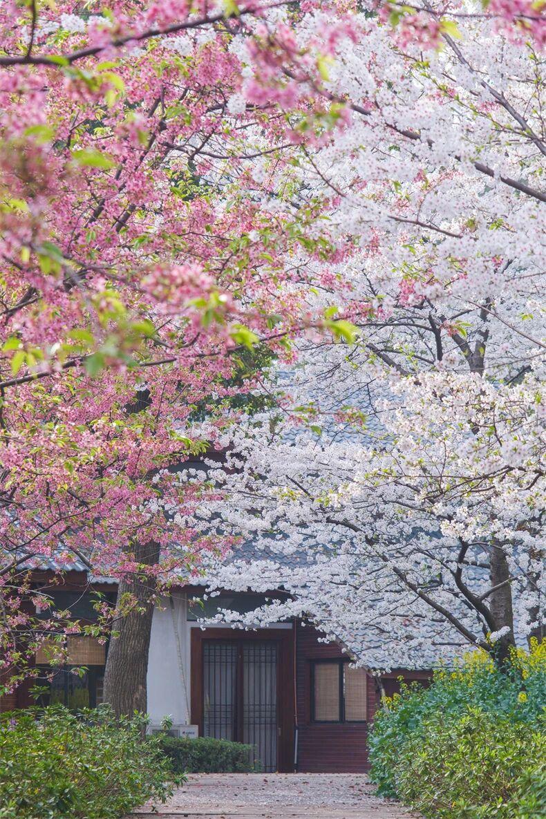 武漢大學的櫻花大道古意盎然,櫻花與老齋舍的民國建築相融,書香與花香交織;