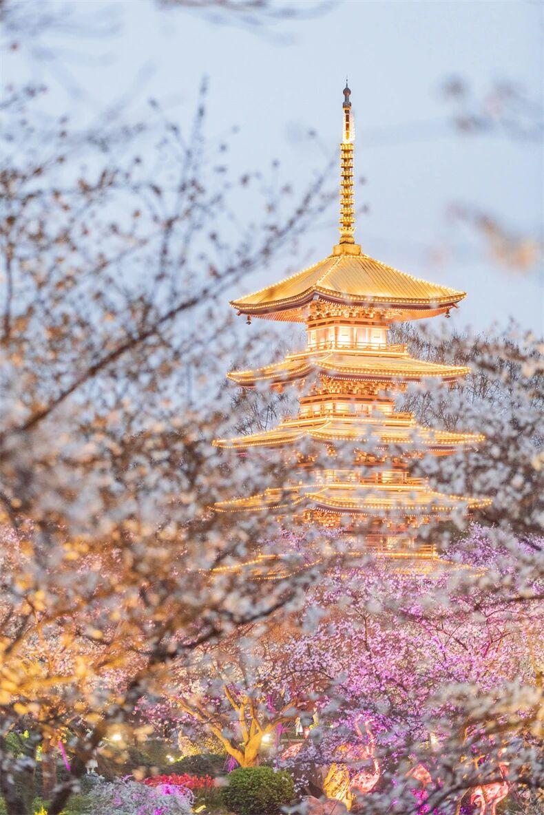 東湖櫻園更是世界級賞櫻地,品種繁多、花海連片;尤其入夜時,燈光璀璨映襯着浪漫櫻花,氛圍感直接拉滿。