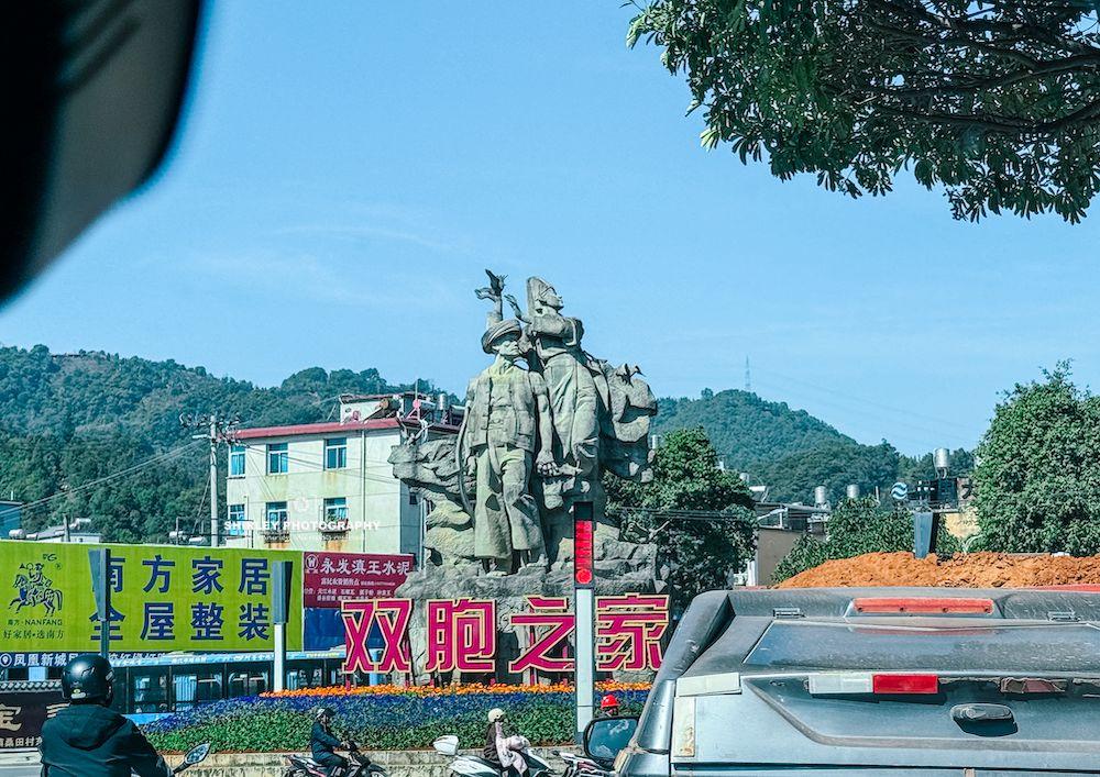 墨江除了紫米還“盛產”雙胞胎,這點我在去之前便有聽說。起初以爲多半是網絡營銷的誇大之詞,沒想到一下高速進入墨江境內,便發現“雙胞元素”在這座小城無處不在。比如城市有馬路名叫雙胞大道、有酒店名叫雙胞大酒店、有公園名叫雙胞文化公園,就連高速收費站前的廣告牌都寫着“雙胞之家、雙生之城”八個大字。可見當地的文旅宣傳,對於雙胞文化十分重視。