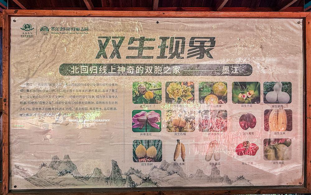最讓人驚訝的是墨江不僅雙胞胎多,連植物都常常出現雙生現象。景區的科普專欄裏,就展示着當地雙生的土豆、紅薯、山藥、香蕉等等。