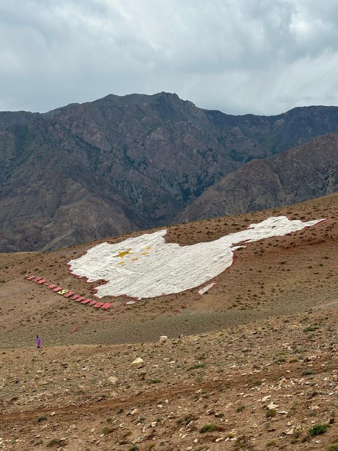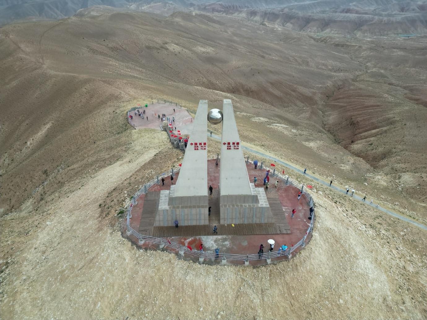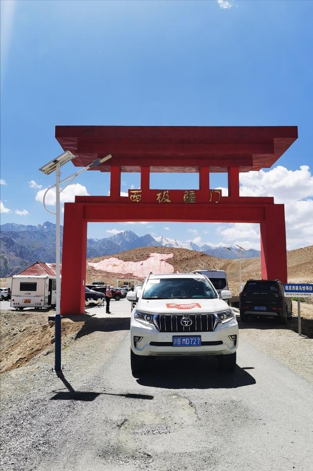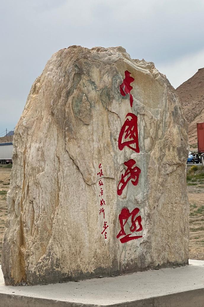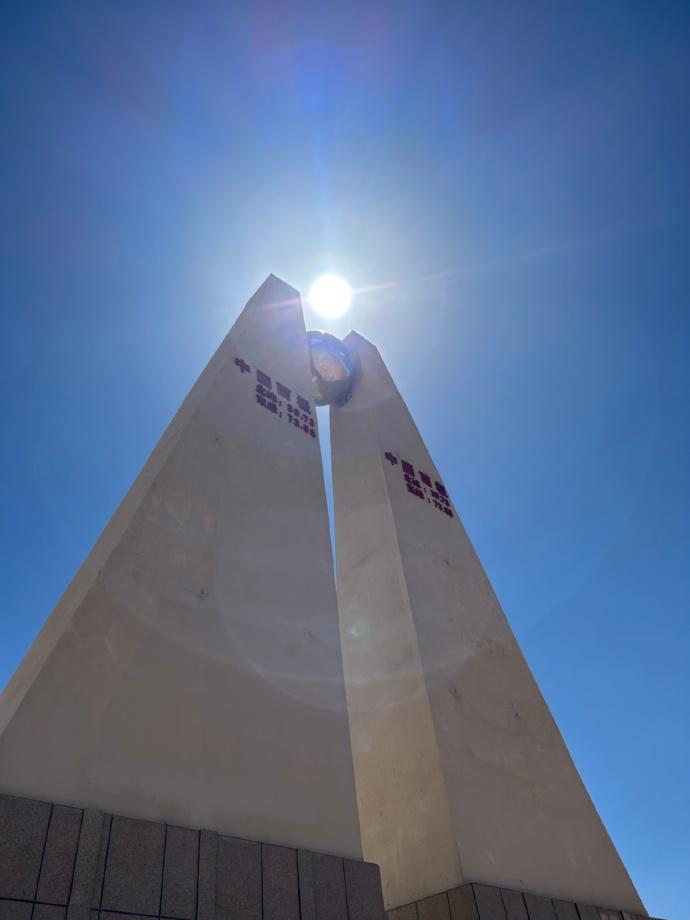 中國西極地標,建造的是一座像“八”一樣的塔型建築,高19.99米,“八”字頂上刻着“中國西極”以及座標經緯度,是“一帶一路”的象徵符號。