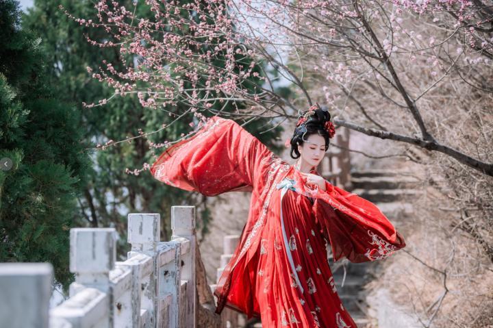 漢服愛好者在雲臺山花間賞景,翩躚起舞。雲臺山景區 供圖