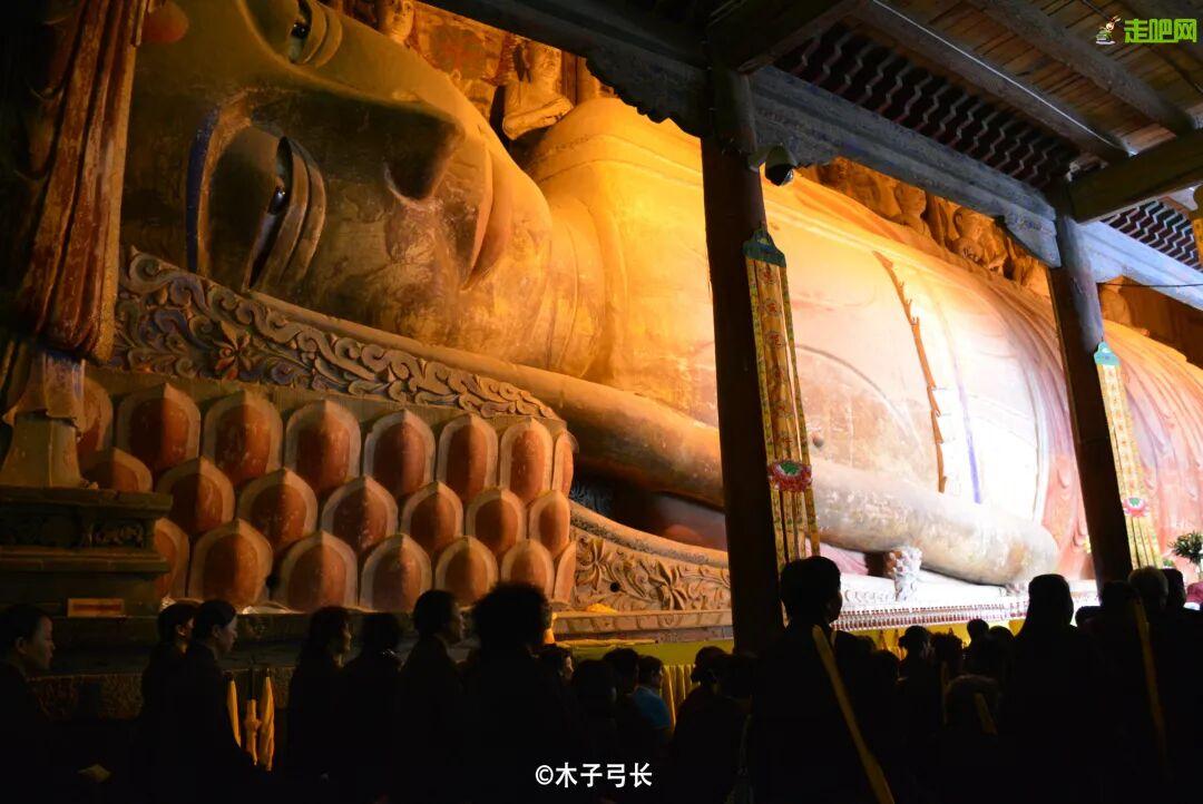 張掖大佛寺:始建於西夏永安元年(1098年)。寺內有巨大的臥佛像,長34.5米,爲中國現存最大的室內臥佛像。